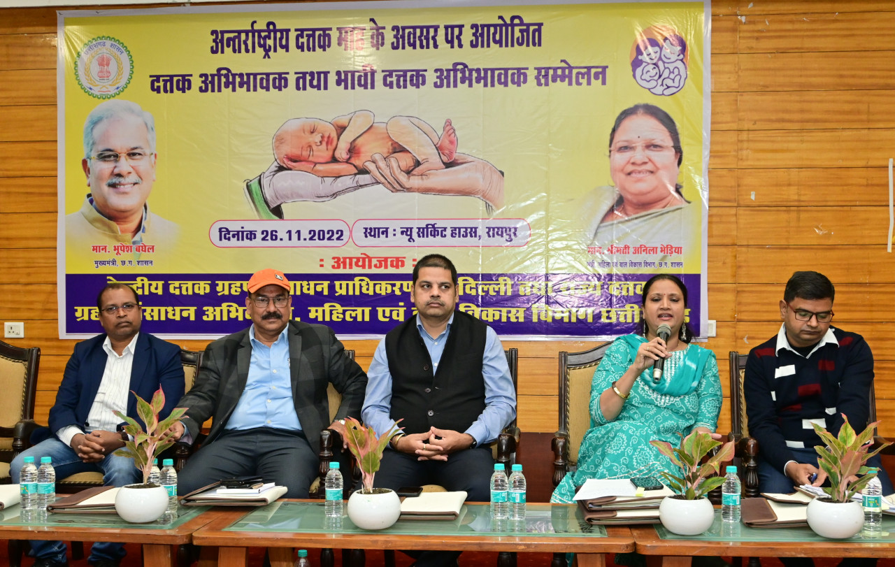रायपुर, 27 नवम्बर I संतान सुख के लिए तरसते हुए दंपत्तियों के लिए दत्तक संतान घर में खुशहाली लेकर आए हैं। अब सूने घर में भी किलकारियां गूंज रही हैं तो वहीं दत्तक अभिभावक अपनी दत्तक संतानों के लिए जैविक संतानों की तरह ही वात्सल्य भाव से भविष्य के सपने संजो रहे हैं। इस संबंध में चर्चा आज राजधानी रायपुर के न्यू सर्किट हाउस में अंतरराष्ट्रीय दत्तक माह के अवसर पर आयोजित राज्यस्तरीय सम्मेलन में हुई। सम्मेलन का आयोजन केन्द्रीय दत्तक ग्रहण संसाधन प्राधिकरण नई दिल्ली, छत्तीसगढ़ राज्य दत्तक ग्रहण संसाधन अभिकरण , महिला एवं बाल विकास विभाग छत्तीसगढ़ शासन के संयुक्त तत्वावधान में किया गया था।