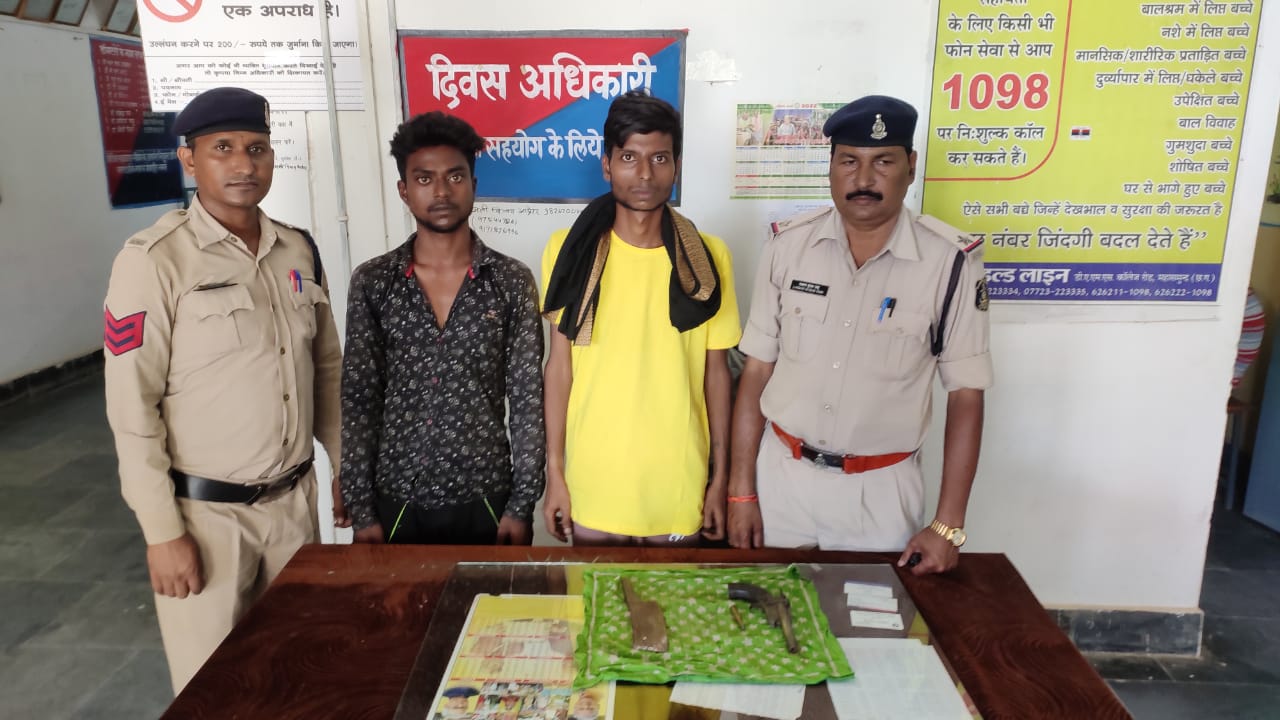 महासमुन्द, 01 सितम्बर । पुलिस अधीक्षक महासमुन्द भोजराम पटेल (IPS) ने समस्त थाना/चौकी प्रभारियों कोे संदिग्ध व्यक्तियों की निगरानी, अवैध शराब, नशीली पदार्थ, अवैध गांजा की तस्करी तथा त्यौहारी सीजन को मद्देनजर रखते हुये अवैध हथियार चाकू लेकर घुमने वालों के विरूध्द शीघ्र कार्यवाही करने हेतु निर्देशित किया गया था। दिनांक 31.08.2022 को जरिये मुखबिर सूचना मिली कि ओव्हर ब्रिज लहरौद पडाव के पास दो व्यक्ति जो अपने पास देशी कट्टा एवं कत्तल लेकर लहराते हुये लोगो को भय दिखा रहे है जिससे आस पास के लोग भयभीत है कि सूचना को पुलिस अधीक्षक महासमुन्द, के द्वारा गम्भीरता से लेते हुये त्वरित कार्यवाही करने हेतु सायबर सेल की टीम एवं थाना पिथौरा की पुलिस टीम को निर्देशित किया गया कि जिसके तहत् टीम द्वारा मुखबिर के निशानदेही पर मौका पहुच कर मुखबिर द्वारा बताये हुलिये के आधार *02 व्यक्ति घेराबंदी पकडा गया जिनसे पूछताछ करने पर एक व्यक्ति अपना नाम (01) वतन डडसेना पिता लोकनाथ डडसेना उम्र 27 वर्ष सा. वार्ड नं0 09 महल पारा पिथौरा महासमुन्द एवं दूसरा व्यक्ति ने अपना नाम (02) मुकेश नायक पिता बहादुर नायक उम्र 23 वर्ष सा. लाखागढ पिथौरा महासमुन्द का निवासी होना बताये। जिनसे पुलिस की टीम के द्वारा पूछताछ करने पर अपने उपस्थिति सही सही जवाब न देखर पुलिस को गुमराह करने लगे जिनसे बारिकी से पूछताछ करने व तलाशी लेने पर आरोपी वतन डडसेना के कब्जे से 01 नग देशी कट्टा एवं 01 नग जिंदा कारतूस तथा आरोपी मुकेश नायक के कब्जे से 01 नग कत्तल रखे मिला। पुलिस सक्रियता से आरोपियों के द्वारा किसी घटना को अंजाम देने के पूर्व पुलिस द्वारा धर दबोचा गया तथा आरोपीगण घटना करने कि नियत से पिथौरा में घुम रहे थे। आरोपीयों को गिरफ्तार कर उनके कब्जे से 01 नग देशी कट्टा एवं 01 नग जिंदा कारतूस तथा 01 नग कत्तल जुमला कीमति करीब 8800 रूप्ये को बरामद कर थाना पिथौरा में अपराध क्रमांक 198/22 धारा 25, 27 आर्म्स एक्ट के तहत् कार्यवाही की गई है।