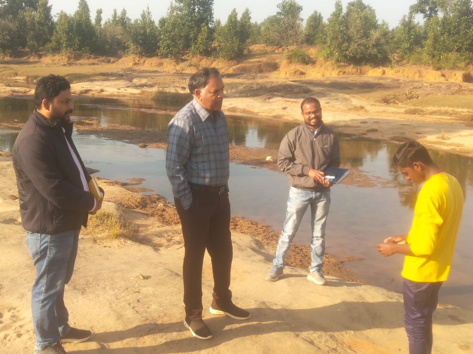 जिससे स्थानीय लोगों को रोजगार मिलने के साथ-साथ उच्च स्तरीय जलागार निर्माण कार्य करने का प्रशिक्षण भी प्राप्त हो सके। कलेक्टर द्वारा स्थानीय किसानों को शासन द्वारा अधिकृत धान खरीदी केन्द्रों पर ही अपनी उपज विक्रय करने हेतु प्रेरित किया गया ताकि किसान बिचौलियों के जाल से बचकर शासन द्वारा प्रदाय किये जा रहे समर्थन मूल्य पर अपनी उपज का विक्रय कर सकें। इसके कलेक्टर द्वारा कछौड़ ग्राम पंचायत भवन के निकट घुटरा समूह जल प्रदाय योजना के लिये स्वीकृत लागत रूपये 2329.34 लाख (बाहरी अधोसंरचना) अंतर्गत निर्माण किये जाने वाले जल शुद्धिकरण संयंत्र हेतु चयनित शासकीय भूमि का अवलोकन किया।