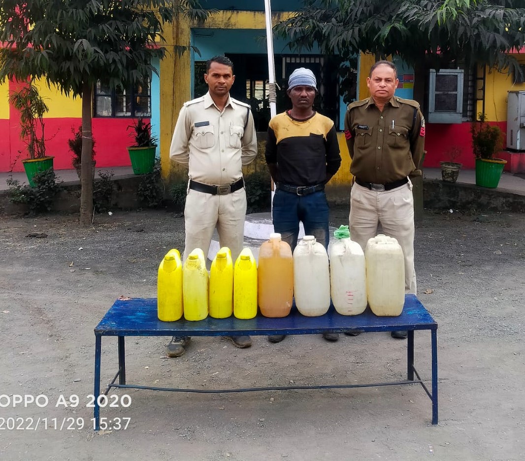 KORBA,30 NOVEMBER I पुलिस अधीक्षक कोरबा संतोष सिंह,अतिरिक्त पुलिस अधीक्षक कोरबा अभिषेक वर्मा , नगर पुलिस अधीक्षक दर्री रॉबिंसन गुड़िया द्वारा निजात अभियान के तहत गांजा एवं अवैध शराब एवं नशीली दवाईयो पर प्रभावी कार्यवाही करने निर्देशित किया गया है। वरिष्ठ अधिकारियों के मार्गदर्शन में चौकी हरदीबाजार क्षेत्र में अवैध शराब बिक्री करने वालों पर लगातार कार्यवाही की जा रही है। इसी तारतम्य में 29.11.2022 को जरिये मुखबीर से सूचना प्राप्त हुई कि ग्राम मुड़ापार निवासी ग्रहण सिंह पोर्ते ग्राम मुड़ापार स्कूल के पास झाड़ियों में छुपाकर अवैध रूप से महुआ शराब रखकर विक्रय कर रहा है कि सूचना रेड कार्यवाही करने पर आरोपी ग्रहण सिंह पोर्ते के कब्जे से अलग अलग प्लास्टिक के जरीकेन में भरी कुल 61 लीटर हाथ भट्टी की बनी I
