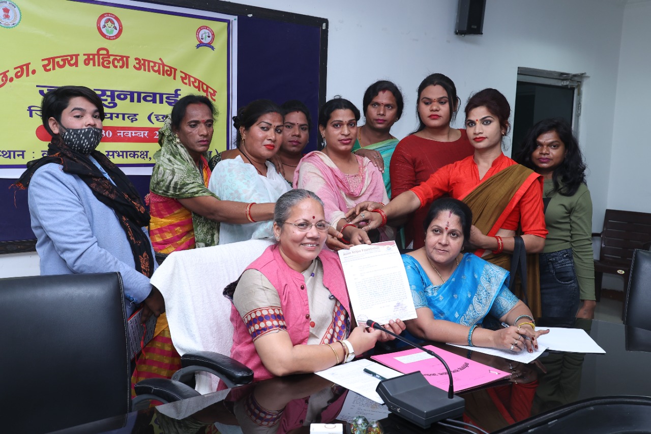 2019 एक्ट के तहत उन्हें कानूनी संरक्षण एवं अधिकार प्राप्त है। किंतु जागरूक नहीं होने के कारण तथा उन्हें उचित मार्गदर्शन नहीं मिलने के कारण वह अपने अधिकार की लड़ाई नहीं लड़ पाते हैं। आज इसी परिपेक्ष्य में असीम कृपा फाउंडेशन के तत्वाधान में थर्ड जेंडर समुदाय तृतीय लिंग समुदाय के समस्याओं की सुनवाई भी अब राज्य महिला आयोग के अधीन हो पाएगा। राज्य महिला आयोग की अध्यक्ष डॉ.किरणमयी नायक आज रायगढ़ जिले के सभाकक्ष में सुनवाई करते हुए कहा कि किसी भी प्रकार की समस्या हो या कोई पुरुष परेशान करें या फिर कोई महिला भी परेशान करेगा तो भी महिला आयोग में थर्ड जेंडर और एलजीबीटी कम्युनिटी शिकायत कर सकता है।