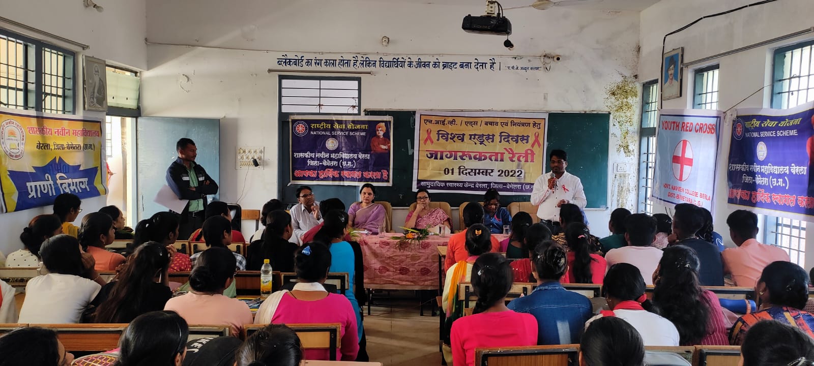 बेमेतरा,01 दिसम्बर I बेरला महाविद्यालय में विश्व एड्स दिवस पर एक दिवसीय कार्यशाला का आयोजन किया गया था जिसमें मुख्य वक्ता के रूप में सामुदायिक स्वास्थ्य केंद्र बेरला से विषय विशेषज्ञ के दिनेश कुमार गंगबेर (सीनियर सुपरवाइजर), मौसमी टंडन (काउंसलर) तथा नरोत्तम गायकवाड उपस्थित थे। कार्यक्रम का शुरुआत राजगीत से किया गया तत्पश्चात सभी विषय विशेषज्ञों का पुष्प गुच्छ देकर स्वागत किया गया। सर्वप्रथम मौसमी टंडन ने एचआईवी संबंधित जानकारी दिया जिसमें एचआईवी फैलने के मुख्य चार कारण बताएं संक्रमित ब्लड चढ़ाने से, असुरक्षित यौन संबंध से, मां से बच्चे में संक्रमण तथा उसके बचाव के बारे में बताया साथ ही बच्चों द्वारा जो भी प्रश्न पूछे गए उनका समाधान किया गया।