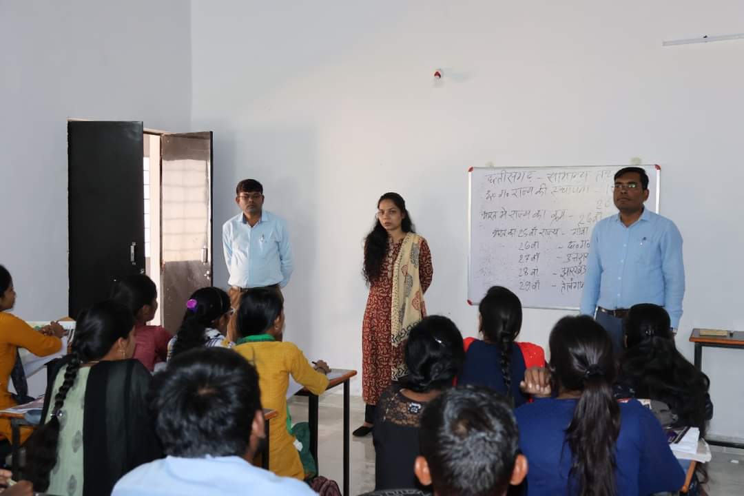 इस अवसर पर दिनेश कुमार नेताम सहायक संचालक जनसंपर्क द्वारा छत्तीसगढ़ जनसंपर्क से प्रकाशित होने वाली मासिक पत्रिका जनमन के बारे में विद्यार्थियों को बताया कि प्रतियोगी परीक्षा के लिए तथ्यों पर आधारित जनमन पत्रिका बहुत उपयोगी है और प्रतिमाह कोचिंग संस्थान के विद्यार्थियों को तैयारी के लिए जनमन पत्रिका दी जाएगी। इस दौरान जनमन पत्रिका सहित जिले की उपलब्धियों पर आधारित न्याय का छत्तीसगढ़ मॉडल पुस्तक का वितरण किया गया। संयुक्त कलेक्टर श्रीमती सुमन राज ने बताया विद्यार्थियों की सुविधानुसार कालेज में अध्ययनरत है उन्हें सुबह की पाली में एवं बाहर से आने वाले विद्यार्थियों को दोपहर की पाली में इस तरह विद्यार्थियों के सुविधानुसार अभी दो पाली में कक्षा संचालित की जा रही है।