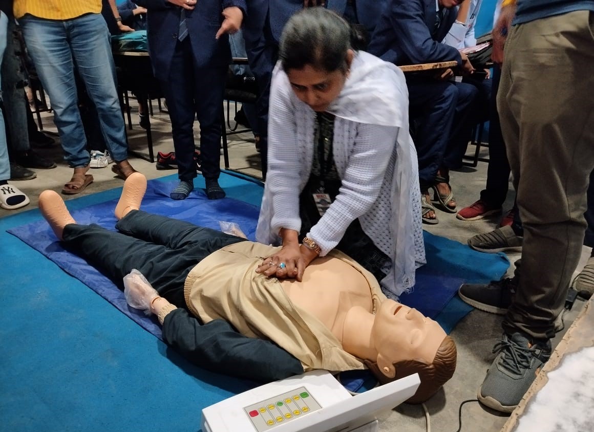 ताकि दिमाग तक ऑक्सिजन की आपूर्ति हो सके। इस सी.पी.आर. तकनीक की मदद से मरीज की बचने की संभावना काफी हद तक बढ़ जाती है। टेªनर बसंत बरेठ ने विद्यार्थियों को फर्स्ट एड़ एवं फायर सेफ्टी की ट्रेनिग दी। साथ ही टेªनर आकाश सिंह ने विद्यार्थियों को प्रेक्टिकल ग्रांउड में फायर सेफ्टी के बारे में बताया की आग किस प्रकार से लगती है और उसे कैसे नियंत्रित कर बुझाया जा सकता है। अग्नि शमक यंत्र के प्रकार एवं प्रयोग की भी जानकारी तथा विद्यार्थियों को डेमों के द्वारा बताया गया। विद्यार्थियों ने स्वय भी सीपीआर तकनीक का प्रयोग डेमों मानव पुतले से किया तथा अग्नि शमक यंत्र का उपयोग आग बुझाने हेतु किया।