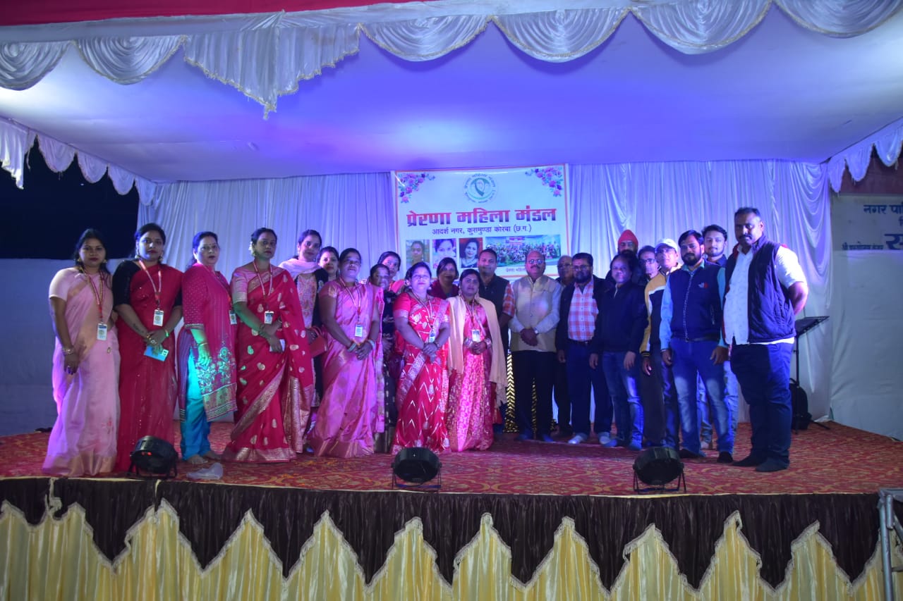कुसमुंडा,12 दिसंबर I में प्रेरणा महिला मंडल द्वारा आनंद मेले का आयोजन किया गया। जिसमें मुख्य अतिथि कुसमुंडा थाना प्रभारी राजेश जांगड़े जी थे साथी ही दीपका से उत्खनन विभाग के महापबंधक बी के कुर्रे साहब और उनकी धर्मपत्नी श्रीमती शांति कुर्रे मैडम जी उपस्थित थे एवं साथ ही हमारे क्षेत्रीय एरिया के .जे सी.सी मेंबर आर.सी मिश्रा, ए के अंसारी, अशोक साहू , निरंजन सिंह , राज ललन पांडे , ए.एस एन राव एवं हमारे वार्ड के पार्षद शाहिद कुजूर , पार्षद अजय प्रसाद ,सुरजीत सिंह सैलू उपेंद्र सिंह, कुरु राम, तन्मय टाक, सोनू और भी गणमान्य नागरिक उपस्थित हुए थे l यह भव्यआयोजन प्रेरणा महिला मंडल की अध्यक्षा श्रीमती उमा सोनी उपाध्यक्ष श्रीमती मीनाक्षी शर्मा और सचिव श्रीमती तुलेश्वरी साहूजी के मार्गदर्शन में उनके सहयोगी सदस्यों द्वारा किया गया था l