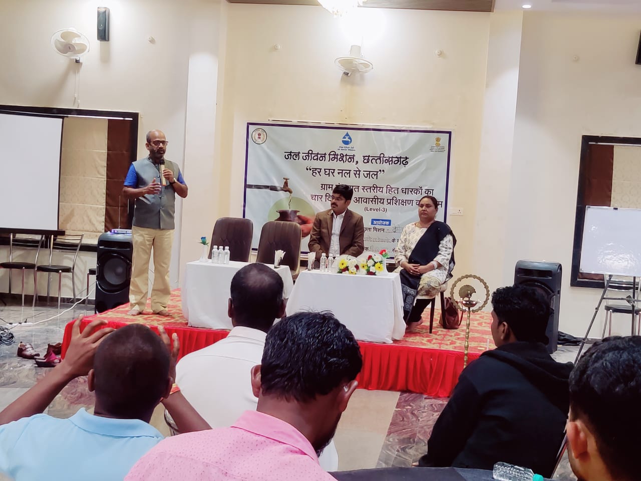 प्रशिक्षण में जल जीवन मिशन के उद्देश्यों एवं अवधारणा पर चर्चा किया गया और हर घर नल से जल प्रदाय हेतु कार्य योजना पर चर्चा किया गया। कलेक्टर ने कहा कि आपके गांव में जल जीवन मिशन के काम चल रहे हैं उसकी गुणवत्ता को भी परखें, योजना पूर्ण होने के बाद आपको ही संधारित करना है। गांव में जल का सदुपयोग करने का संकल्प लें। हमको जरुरत के हिसाब से पानी का इस्तेमाल करना होगा। जल है तो कल है, बड़े शहरों में नलों में मीटर लग रहा है, जो पनी का जितना उपयोग उतना ही टैक्स अदा करना होगा। मीटर लगेगा तो नागरिक पानी का सीमित उपयोग करने लगेंगे। जिलाधीश ने आगे कहा कि धरती का भू-जल स्तर धीरे-धीरे कम हो रहा है, इसे ध्यान में रखते हुए वाटर रिचार्जिंग के प्रति भी हमें ध्यान देना होगा।