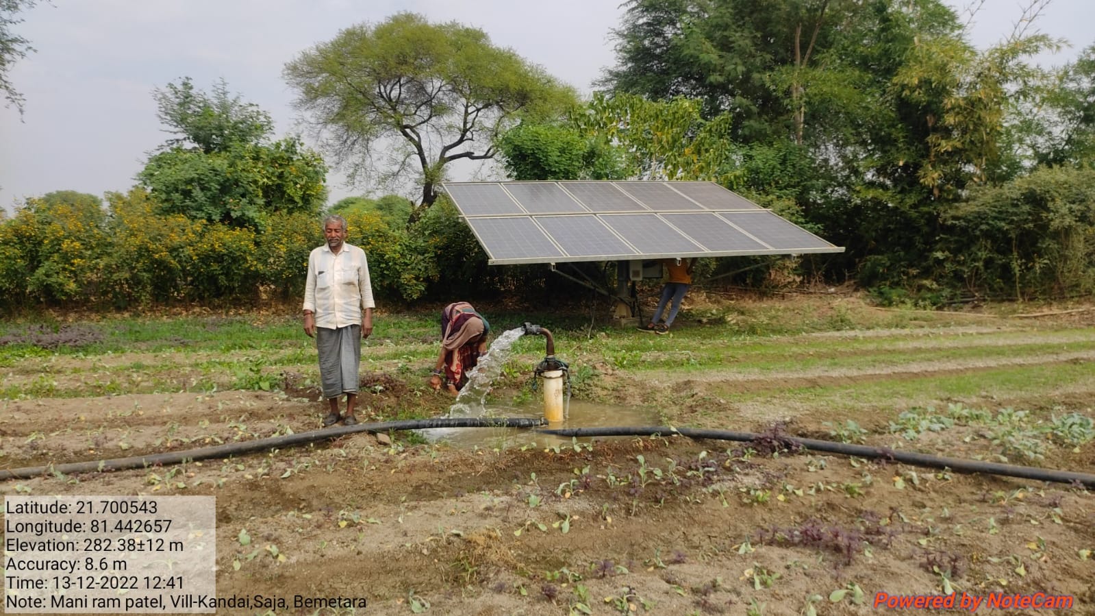 ग्राम-कंदई, वि.ख.-साजा के कृषक श्री मनीराम के कृषि भूमि में वर्ष 2016-17 में सौर सुजला योजनांतर्गत 03 एचपी क्षमता के सोलर पंप स्थापित है, कृषक द्वारा बताया गया कि पिछले 05 वर्ष से सोलर पंप से सिंचाई कर भरपूर लाभ लिया जा रहा है तथा प्रति वर्ष 1.5 एकड़ कृषि भूमि पर सब्जी का फसल लिया जा रहा है। कृषक द्वारा बताया गया कि सोलर पंप स्थापित होने के पूर्व कृषि भूमि पर बिजली नहीं होने के कारण कोई फसल नहीं लिया जाता था, केवल मौसम पर निर्भर रहना पड़ता था किन्तु सोलर पंप स्थापित होने से सिंचाई के लिये आत्मनिर्भर हो गये है, अब सोलर पंप से वर्ष भर सिंचाई करते है, जिससे हमे बहुत अच्छी आमदनी हो रही है। सोलर पंप मेरे लिए बहुत लाभदायक सिद्ध हुआ है।