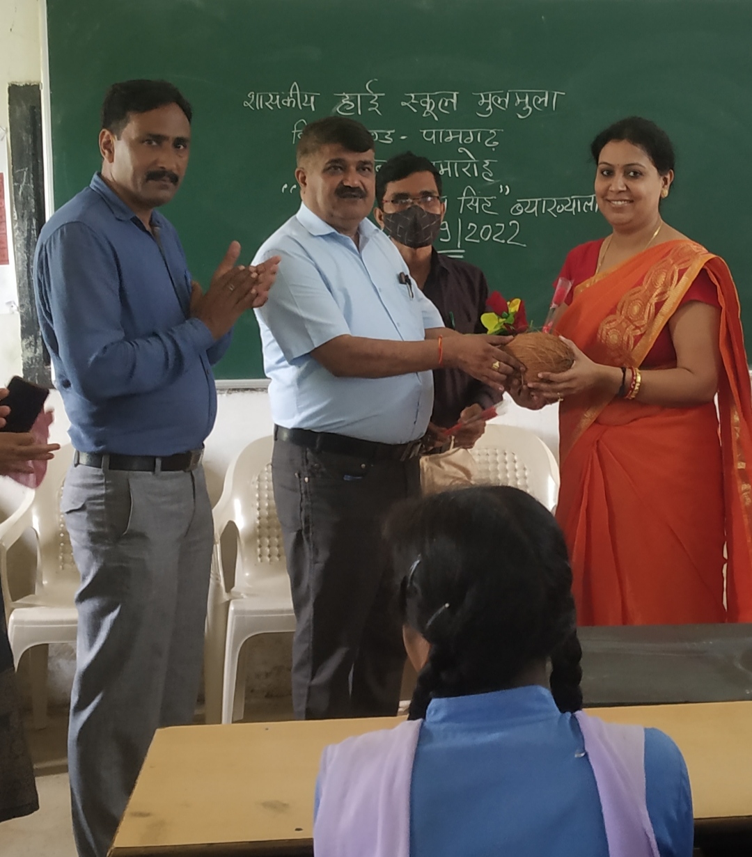 गौरतलब है कि मुख्यमंत्री भूपेश बघेल ने शिक्षक दिवस पर राज्य में छत्तीसगढ़ी भाषा को बढ़ावा देने के लिए सभी स्कूलों में सप्ताह में एक दिन छत्तीसगढ़ी और आदिवासी बोली की शिक्षा प्रदान करने की घोषणा की है। सप्ताह में एक दिन छत्तीसगढ़ी भाषा में पढ़ाई से स्थानीय भाषा को बढ़ावा मिलेगा और छात्रों में पढ़ाई के प्रति लगाव उत्पन्न होगा। जिले के स्कूल में इस पहल के प्रारंभ होने पर कलेक्टर श्री सिनहा के निर्देश पर पामगढ़ विकासखंड शिक्षा अधिकारी राजेन्द्र शुक्ला, व सहायक विकास खण्ड शिक्षा अधिकारी जयराम सारथी समन्वयक द्वारा श्रीफल व पुष्पगुच्छ से शिक्षिका श्रीमती प्रतीक्षा सिंह का सम्मान किया गया। इस अवसर पर मुलमुला टी आई श्री मोहले, समन्वयक मधुसूदन शर्मा, अजय मरावी एवं स्कूल के स्टाफ उपस्थित थे।