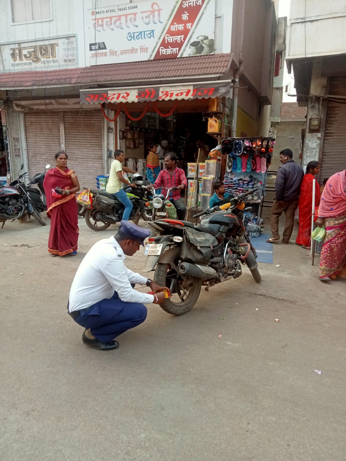 राजनांदगांव,13 दिसंबर I पुलिस अधीक्षक राजनांदगांव प्रफुल्ल ठाकुर के निर्देशन पर शहर के पुराना रेस्ट हाउस और गुड़ाखू लाईन में नो पार्किंग में रखे वाहनों पर यातायात राजनांदगांव पुलिस द्वारा आज 13.12.2022 को कुल 40 वाहनों से 12000/-रूपये, की चालानी कार्यवाही की गई I 13.12.2022 को पुलिस अधीक्षक राजनांदगांव प्रफुल्ल ठाकुर के निर्देशन में अतिरिक्त पुलिस अधीक्षक लखन पटले के मार्गदर्शन में डीएसपी यातायात दिलीप सिसोदिया के नेतृत्व में यातायात पुलिस राजनांदगांव द्वारा अभियान चलाकर नो-पार्किंग जोन में खड़े वाहनों के मालिकों पर चलानी कार्यवाही की गई।