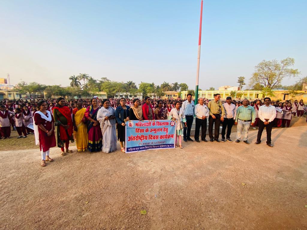 बेमेतरा,15 दिसम्बर I महिलाओं के विरूद्ध हो रही हिंसा समाप्त करने हेतु अंतर्राष्ट्रीय मानवाधिकार दिवस के अंर्तगत सखी वन स्टॉप सेंटर महिला एवं बाल विकास विभाग बेमेतरा द्वारा 16 दिवस की अवधि में अलग-अलग ग्राम, महाविद्यालय, विद्यालय, आंगनबाड़ी, जनचौपाल ब्लाक स्तर पर विस्तृत अभियान के माध्यम से जागरूकता, रैली, कार्यशाला कार्यक्रम का आयोजन किया गया। जिसमें स्कूली बालक-बालिका, शिक्षक-शिक्षिका, ग्रामीण महिलाएं, स्वसहायता समूह की महिलाएं, आंगनबाड़ी कार्यकर्ता एवं मितानिन शामिल हुए। उक्त जागरूकता एवं प्रचार-प्रसार कार्यक्रम में संरक्षण अधिकारी नवा बिहान- यशोदा साहू, बाल संरक्षण इकाई से बाल संरक्षण अधिकारी व्योम श्रीवास्तव एवं परामर्शदाता शाईस्ता परवीन, पुलिस विभाग से पुलिस