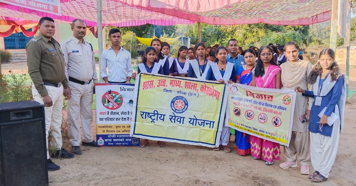 KORBA,19 DECEMBER पुलिस अधीक्षक कोरबा संतोष सिंह द्वारा अवैध नशे के विरुद्ध चलाए जा रहे निजात अभियान के तहत। चौकी रजगामार थाना बालकोनगर के ग्राम कोई के एनएसएस कैंप के बच्चों के बीच जाकर,हमर बेटी हमर मान,अभिव्यक्ति,साइबर क्राइम गुड टच बैड टच,के बारे में विस्तृत जानकारी देकर नाबालिक बच्चों को गाड़ी न चलाने देने के संबंध मे जानकारी देकर जागरूक किया गया। ग्राम कोई एनएसएस कैंप के बच्चों को संबोधित करते हुए नशे से होने वाले नुकसान के बारे में बताकर नशे से दूर रहने बुराईयो से बचने की सलाह दिया गया ।
