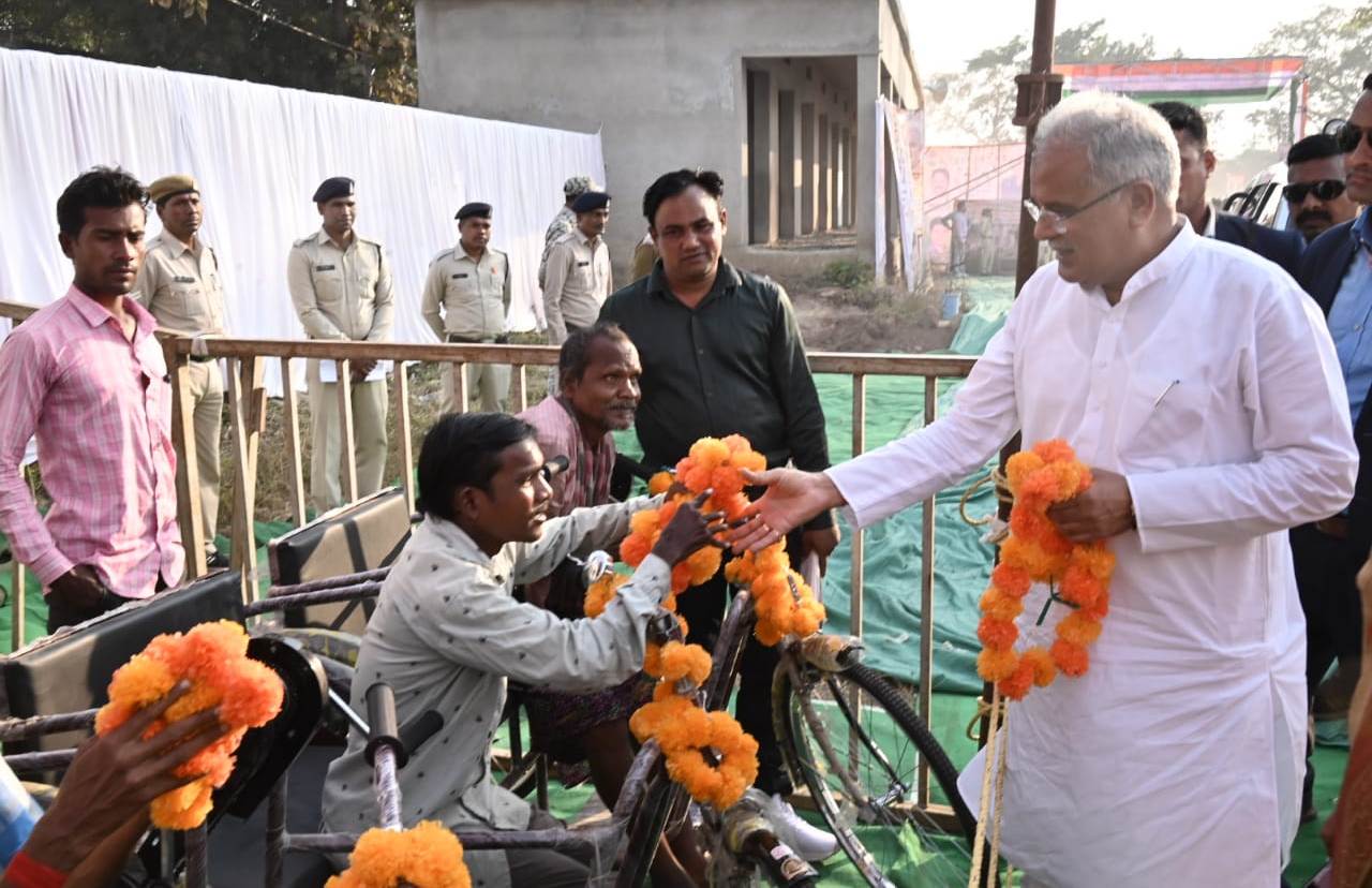 मुख्यमंत्री भूपेश बघेल ने कार्यक्रम की शुरूआत में भेंट मुलाकात का अनुभव बांटते हुए कहा कि भेंट मुलाकात के दौरान एक 40 वर्षीय महिला गेड़ी लेकर आई थी। उन्होंने कहा कि छत्तीसगढिय़ा ओलंपिक की गेड़ी प्रतियोगिता में प्रथम आई थी। उन्होंने कहा कि छत्तीसगढिय़ा ओलंपिक से अब महिलाएं भी अपने बचपन में खेले जाने वाले खेल फिर से खेल पा रही हैं। उन्होंने कार्यक्रम में दिव्यांगजनों को सहायक उपकरण वितरित किया। इनमें बिलाईगढ़ और भटगांव के 8 दिव्यांगजनों को ट्रायसायकल और दो दिव्यांगजनों को वैशाखी के साथ ही स्कूली बच्चों को जाति प्रमाण पत्र भी वितरित किए।