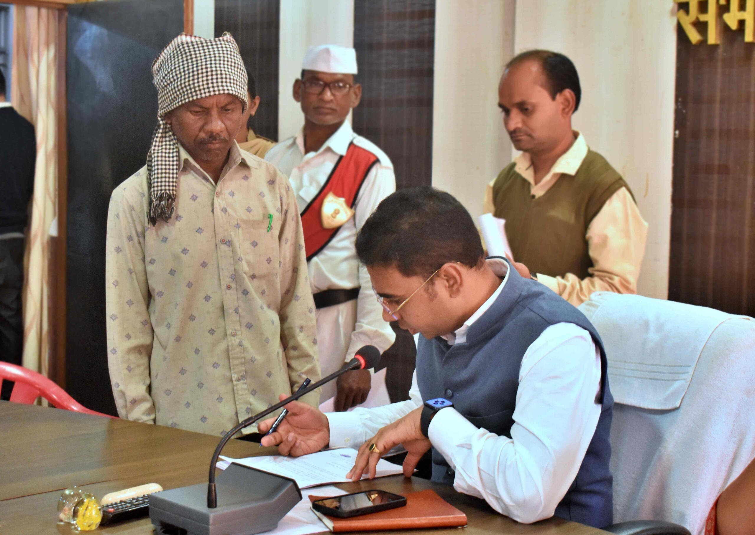 बालोद,21 दिसम्बर I कलेक्टर कुलदीप शर्मा ने आज साप्ताहिक जनदर्शन में विभिन्न ग्रामों से आए हुए लोगों की समस्याआंे एवं माॅगों को सुना और संबंधित अधिकारियों को त्वरित निराकरण के निर्देश दिए। जनदर्शन कार्यक्रम में ग्राम जाटादाह के सरपंच ने स्कूल में शिक्षकों की नियुक्ति कराने की मांग की, जिस पर कलेक्टर ने जिला शिक्षा अधिकारी को त्वरित कार्रवाई करने के निर्देश दिए। ग्राम भेण्डरा के लक्ष्मण सिंह ने आर्थिक सहायता दिलाने, ग्राम हसदा की देवकुमारी ने स्कूल में नया शौचालय निर्माण कराने, चैनगंज के किशोर कुमार ने प्रधानमंत्री आवास योजना का लाभ दिलाने, ग्राम बीजाभांठा के भारत लाल ने खेत का सीमांकन कराने, ग्राम मटिया के फागुराम ने वृद्धापेंशन दिलाने सहित अन्य ग्रामों से पहुॅचे ग्रामीणों ने भी अपनी माॅगांे एवं समस्याओं से संबंधित आवेदन कलेक्टर को सौंपे। इस अवसर पर जिला पंचायत की मुख्य कार्यपालन अधिकारी डाॅ. रेणुका श्रीवास्तव, अपर कलेक्टर श्रीमती इंदिरा तोमर सहित अन्य अधिकारी उपस्थित थे।