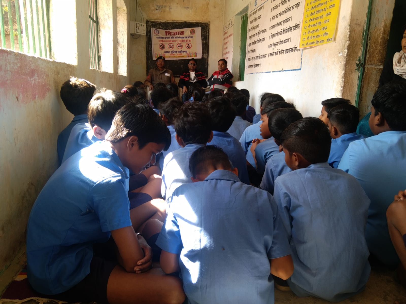 KORBA,23 DECEMBER पुलिस अधीक्षक कोरबा संतोष सिंह द्वारा अवैध नशे के विरुद्ध चलाए जा रहे निजात अभियान के तहत। चौकी कोरबी थाना पसान के प्राथमिक विद्यालय घुईचुया बच्चो के बीच जाकर के,नशा मुक्ति,गुड टच बेड टच,साइबर क्राइम एवम् साइबर सुरक्षा,अभिव्यक्ति एप,ट्रैफिक नियमों के बारे में विस्तृत जानकारी दिया गया। प्राथमिक विद्यालय घुईचुया जाकर बच्चो एवं स्टाफ को संबोधित करते हुए नशे से होने वाले नुकसान के बारे में बताकर नशे से दूर रहने बुराईयो से बचने की सलाह दिया गया ।