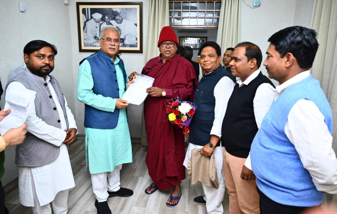 बघेल से बुद्धिस्ट अल्पसंख्यक संवैधानिक भिक्षु संघ ने की सौजन्य मुलाकात