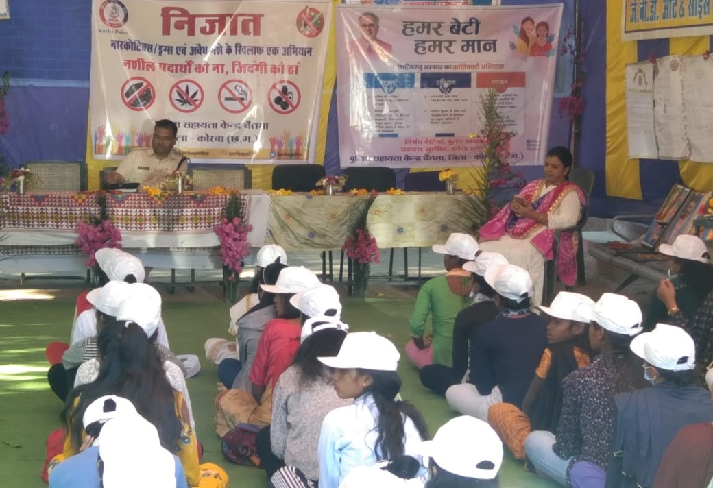 KORBA , 28 DECEMBER I पुलिस अधीक्षक कोरबा संतोष सिंह द्वारा अवैध नशे के विरुद्ध चलाए जा रहे निजात अभियान के तहत। 27.12.2022 को ग्राम इरफ में NSS केम्प में उपस्थित छात्र -छात्राओं को नशे की दुष्प्रभाव से अवगत कराते हुए बचने के उपाय, हमर बेटी हमर मान के अंतर्गत गुड टच बैड टच, अभिब्यक्ति ऐप सायबर अपराध बचने के उपाय ट्रैफिक नियमों से अवगत कराकर बीमा दावा के सम्बन्ध में विस्तृत जानकारी देकर नाबालिक बच्चों को गाड़ी न चलाने देने के संबंध मे जानकारी देकर जागरूक किया गया। छात्र -छात्राओं को संबोधित करते हुए निजात अभियान के तहत नशे के दुस्प्रभाव के तहत कार्यक्रम आयोजित कर नशे से बचने की सलाह दी गई ।