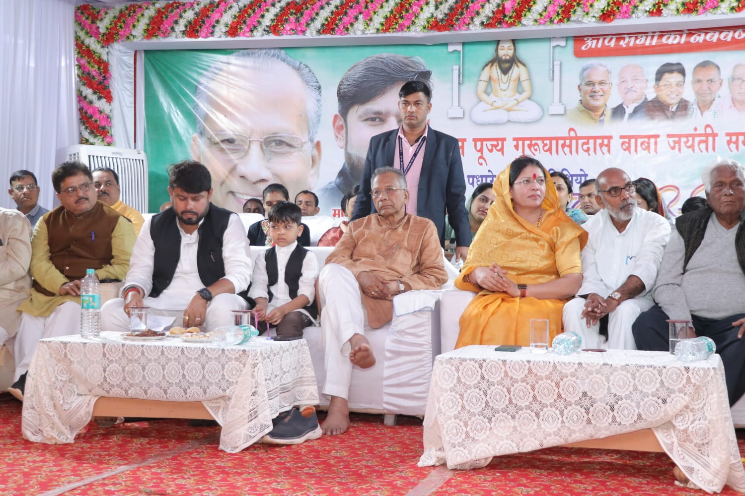 इस अवसर पर विधायक आशीष छाबड़ा ने कहा कि प्रत्येक वर्ष की भांति इस वर्ष भी गुरु घासीदास जयंती समारोह मना रहे हैं। उन्होंने कहा कि बाबा ने मनखे मनखे एक समान का संदेश दिए हैं। इसका हमे अनुकरण करना चाहिए, उनके द्वारा दिए गए सत्य के मार्ग पर चलना चाहिए। इस दौरान गृहमंत्री और विधायक को साफा पहनाकर, शाल श्रीफल और मोमेंटो भेंट कर सम्मानित किया। साथ ही मितानिनों का साड़ी भेंट कर सम्मान किया गया। इस अवसर पर जिला पंचायत बेमेतरा सदस्य शशिप्रभा गायकवाड़, प्रज्ञा निर्वाणी, टी आर जनार्दन, अवनीश राघव सहित वरिष्ठ जनप्रतिनिधि एवं बड़ी संख्या में ग्रामीणजन उपस्थित थे।