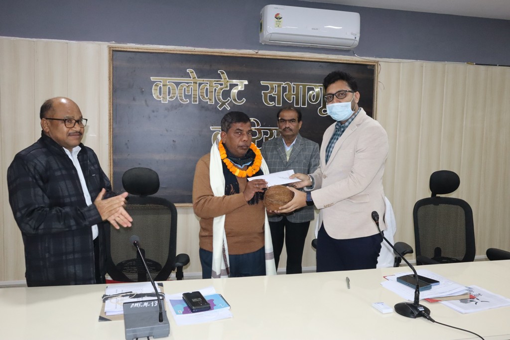 कोरिया 03 जनवरी I नववर्ष के साथ जिला प्रशासन ने कलेक्टर विनय कुमार लंगेह के नेतृत्व में नवीन मानवीय पहल की है। जिले के विभिन्न विभागों के 31 दिसम्बर 2022 को सेवानिवृत्त होने वाले 04 शासकीय सेवकों को उनके सेवानिवृत्ति सम्मान समारोह में कलेक्टर विनय कुमार लंगेह द्वारा पेंशन भुगतान आदेश (पी.पी.ओ/जी.पी.ओ) समूह बीमा, सामान्य भविष्य निधि, अवकाश नगदीकरण सहित सेवा निवृत्ति पर दिये जाने वाले सभी स्वत्वों के भुगतान आदेश देते हुए पुष्प गुच्छ एवं शाल-श्रीफल के साथ सम्मान किया गया। संभागीय संयुक्त संचालक कोष लेखा एवं पेंशन सरगुजा संभाग अम्बिकापुर के निर्देशन में जिला कोषालय द्वारा यह सम्मान समारोह आयोजित किया गया।