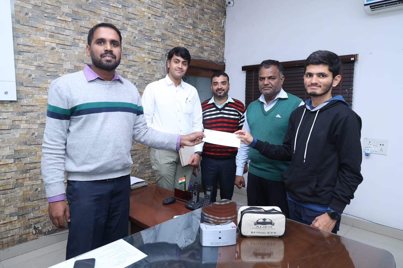 जहां इस डिवाइस को पहला इनाम मिला था। सभी नेत्रहीनों के लिए महत्वपूर्ण अविष्कार को बढ़ावा देने के उद्देश्य से जिला पंचायत सीईओ अबिनाश मिश्रा के मार्गदर्शन में जिंदल प्रबंधन द्वारा टेकफेस्ट विजेता हैदराबाद के युवा वैज्ञानिक रविकिरण को आज वल्र्ड ब्रेल डे के दिन 1 लाख रुपए की राशि प्रदान की गई। सीईओ जिला पंचायत अबिनाश मिश्रा ने उक्त राशि का चेक उन्हे सौंपा। ज्ञात हो कि वल्र्ड ब्रेल डे नेत्रहीनों के लिए संवाद को अधिक सरल और सुविधाजनक बनाने के लिए समर्पित है।