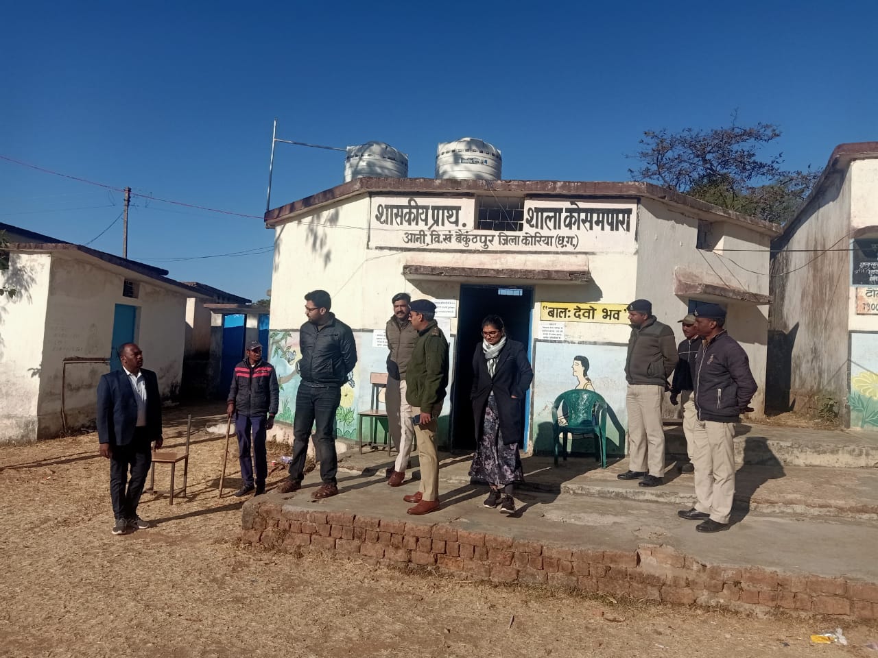 कोरिया 10 जनवरी I त्रि-स्तरीय पंचायत के उप निर्वाचन के तहत जिले में आज मतदान सम्पन्न हुआ। कोरिया जिले में कुल 10 पदों हेतु निर्वाचन निर्धारित थे जिसमें 01 जिला पंचायत सदस्य, 03 सरपंच पद और 06 पंच पद शामिल रहे। इसी क्रम में आज निर्वाचन दिवस पर कलेक्टर विनय कुमार लंगेह ने पुलिस अधीक्षक त्रिलोक बंसल और मुख्य कार्यपालन अधिकारी जिला पंचायत श्रीमति नम्रता जैन के साथ मतदान केंद्रों का निरीक्षण किया। निरीक्षण के दौरान लंगेह ने आनी, खरवत और सरडी के मतदान केंद्र में मतदान का जायजा लिया एवं इस दौरान शांतिपूर्ण, निष्पक्ष और स्वतंत्र मतदान सम्पन्न कराने अधिकारियों को दिशा-निर्देश दिए।