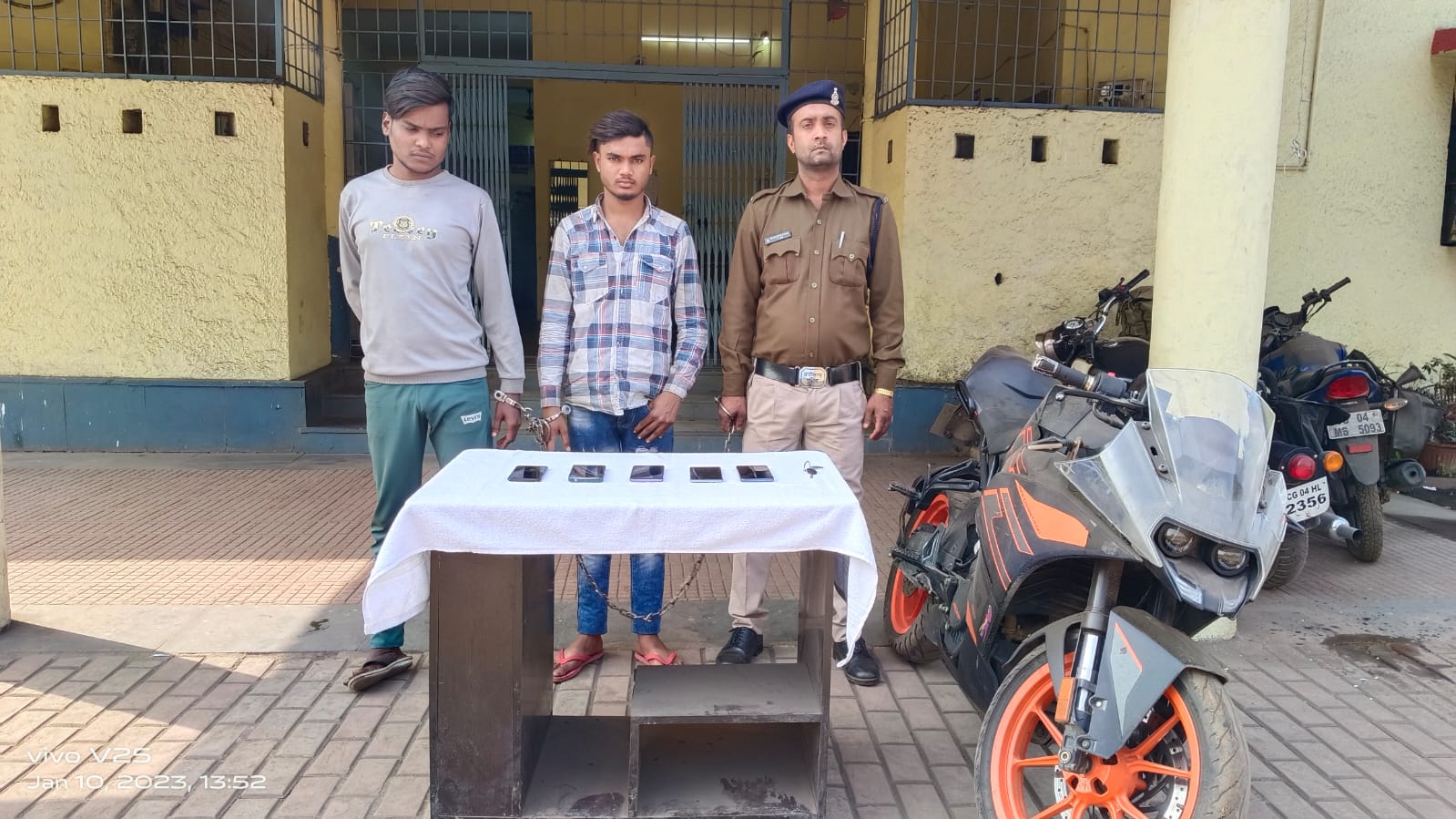 रायपुर,10 जनवरी पुलिस अधीक्षक प्रशांत अग्रवाल के दिशा निर्देश पर एवं अतिरिक्त पुलिस अधीक्षक(शहर)/क्राइम अभिषेक महेश्वरी के मार्गदर्शन में तथा नगर पुलिस अधीक्षक राजीव शर्मा के पर्यवेक्षण में संपत्ति संबंधी अपराधों में धरपकड़ के लिये चलाये जा रहे अभियान के तहत उरला पुलिस के द्वारा एक व्यक्ति से मारपीट कर मोबाईल लूटने वाले दो आरोपियों को उनके द्वारा घटना में उपयोग किये जाने वाले रेसिंग बाईक के साथ पकड़ने सफलता प्राप्त की गई है। जिसके कब्जे से नगदी एवं मोबाईल कीमती 22000/-रू एवं रेसिंग बाईक कीमती लगभग 50000रू बरामद किया गया है। इसके अलावा आरोपियों से अन्य वारदातो में लूटे गए 04 मोबाइल कीमती 60,000 रु जप्त किया गया है !