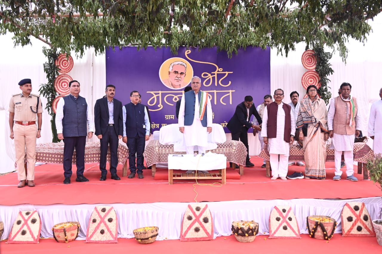 मुख्यमंत्री भूपेश बघेल भेंट-मुलाकात के लिए कोरबा जिले के कटघोरा विधानसभा क्षेत्र के ग्राम नोनबिर्रा हेलीपैड पहुंचे