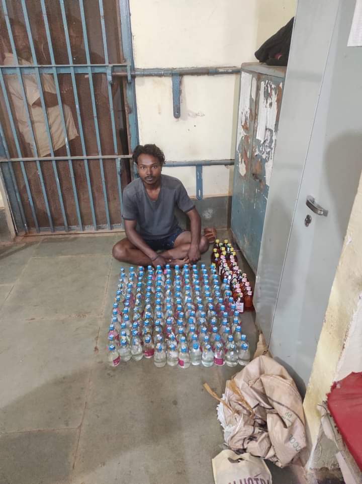 महासमुन्द, 21 सितम्बर । पुलिस अधीक्षक भोजराम पटेल द्वारा थाना प्रभारियों को अवैध मादक पदार्थ (गांजा/शराब ) तस्करी पर रोक लगाने हेतु निर्देशित किया गया था। जिसके तहत थाना/चैकी प्रभारी गण अपने-अपने क्षेत्रों में संदिग्ध वाहन एवं गांजा तस्करो पर नजर रही हुई थी । आज 21 सितम्बर को मुखबीर से सूचना मिला कि एक व्यक्ति मो0सा0 में सफेद रंग की बोरी में अवैध शराब बिक्री हेतु ले जा रहा है की सूचना तस्दीक पर हमराह स्टाप एवं गवाह के मुखबीर के बताये घटना स्थल दलदली रोड रेल्वे फाटक महासमुंद के पास एक व्यक्ति मोटर सायकल के टंकी उपर सफेद रंग के बोरी में रखकर जा रहा था जो पुलिस स्टाफ को देखकर भागने का प्रयास किया जिसे घेराबंदी कर पकड़कर नाम पता पूछने पर अपना नाम बसंत कुमार सूर्या पिता मन्नू कुमार सूर्या उम्र 27 वर्ष साकिन वार्ड नं0 09 छिपियापारा महासमुन्द थाना व जिला महासमुंद का रहने वाला बताया जिसके कब्जे से एक सफेद रंग के प्लास्टिक बोरी में 149 पौवा देशी प्लेन शराब प्रत्येक शीशी में 180-180 एमएल सीलबंद कुल 26880 ML कीमती 11920 रूपये, 20 पौवा गोवा अंग्रेजी शराब प्रत्येक में 180-180 ML सीलबंद कुल 3600 ML कीमती 2400 रूपये, 10 पौवा देशी मशाला शराब प्रत्येक में 180-180 ML सीलबंद कुल 1800 ML कीमती 1100 रूपये कुल जुमला शराब 32220 ML जुमला कीमती 15420 रूपये एवं एक पुरानी इस्तीमाली हीरो पैशन प्रो मो0सा0 बिना नम्बर कीमती 15000 रूपये, कुल जुमला कीमती 30420 रूपये को मुताबिक जप्ती पत्रक जप्त किया गया। आरोपी का कृत्य अपराध धारा 34(2) आबकारी एक्ट का पाये जाने से आरोपी को समय सदर में गिरफ्तार ज्युडिशियल रिमाण्ड पर भेजी गयी है ।