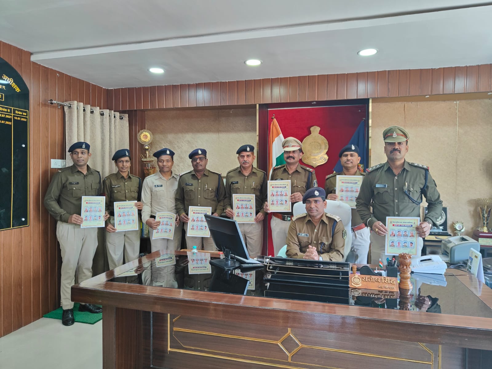 माह जनवरी 2023 में बेसिक, सामुदायिक एवं अन्य क्षेत्रों में अच्छा कार्य करने वाले निरीक्षक अभिनव कांत सिंह, उपनिरीक्षक कृष्णा साहू, उपनिरीक्षक शिवकुमार धारी, सहायक उपनिरीक्षक अजय सिंह, प्रधान आरक्षक चंद्रशेखर पांडेय,महिला प्रधान आरक्षक वेनेदिकता ग्लोरिया बेक, आरक्षक ओम प्रकाश साहू एवं आरक्षक देव सिंह तंवर को पुरस्कृत किया गया है । निरीक्षक अभिनवकांत सिंह को उत्कृष्ट पुलिसिंग एवं सौंपे गए दायित्वों का तत्परतापूर्वक निर्वहन हेतु, उप निरीक्षक कृष्णा साहू को निजात अभियान में उत्कृष्ट कार्य हेतु, उप निरीक्षक शिव कुमार धारी को आरकेटीसी कार्यालय में गोलीकांड मामले में आरोपी गिरफतारी हेतु, सहायक उप निरीक्षक अजय सिंह को पंप हाउस में युवती के जघन्य हत्या मामले में आरोपी के गिरफ्तारी में महत्वपूर्ण योगदान हेतु, प्रधान आरक्षक चंद्रशेखर पांडेय को एक्सीडेंट के मामले में घायलों के रेस्क्यू एवम मानव जीवन रक्षा में उत्कृष्ट योगदान हेतु, महिला प्रधान आरक्षक वेनेदिकता ग्लोरिया बेक को महिला परामर्श केंद्र में परिवारों का काउंसलिंग कर बिखरे परिवारों को वापस जोड़ने हेतु,आरक्षक ओम प्रकाश साहू को ऑफिस कार्य में उत्कृष्ट कार्य हेतु ,आरक्षक देव सिंह तंवर को सीसीटीएनएस डाटा एंट्री में उल्लेखनीय कार्य हेतु कॉप ऑफ द मंथ पुरस्कार से पुरस्कृत किया गया है । आज दिनांक 31 जनवरी 2023 को संतोष सिंह द्वारा सभी अधिकारी कर्मचारियों को नगद इनाम एवम प्रशस्ति पत्र देकर उज्जवल भविष्य की कामना की गई ।
