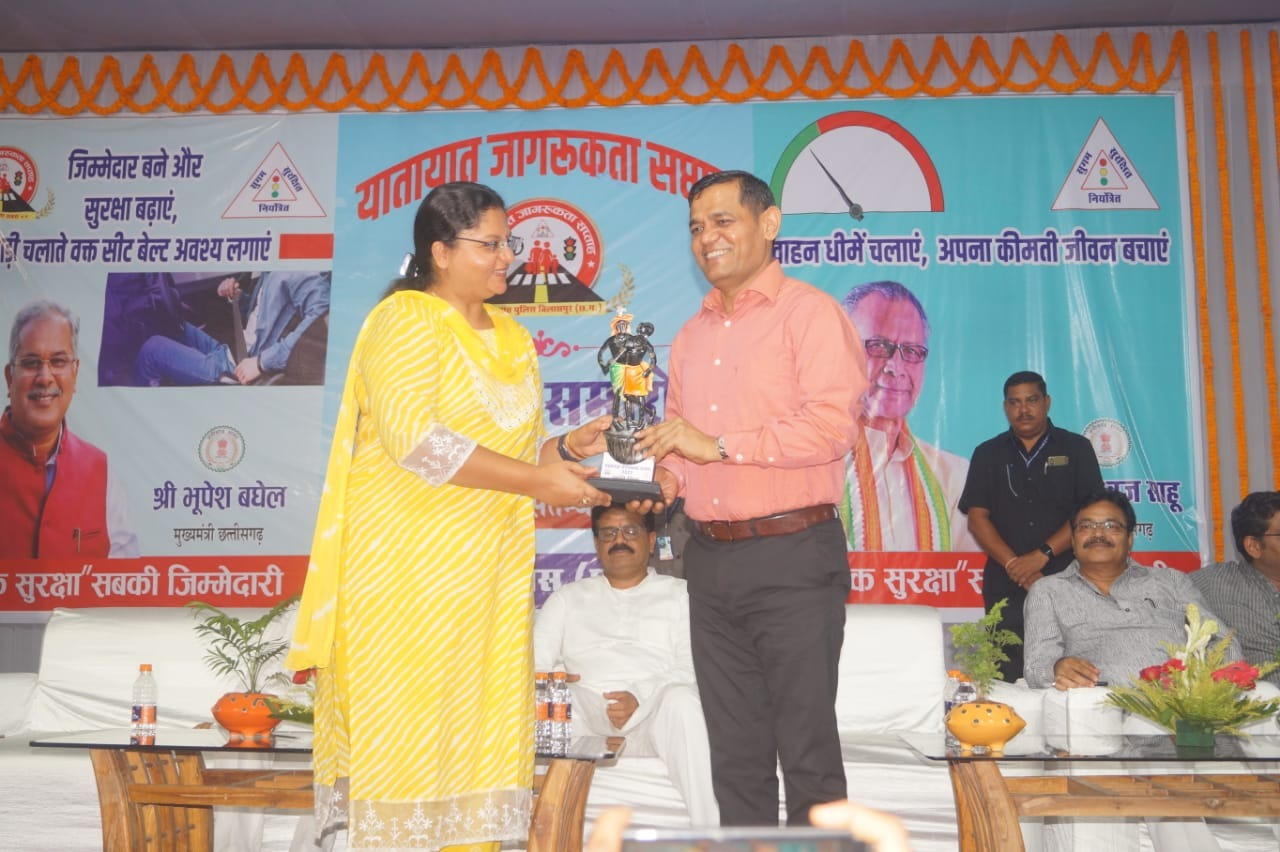 यातायात जागरूकता सप्ताह के समापन समारोह के अवसर पर मुख्य अतिथि माननीय अटल श्रीवास्तव (अध्यक्ष छत्तीसगढ़ पर्यटन) माननीय राम शरण यादव (महापौर नगर पालिक निगम बिलासपुर ) कार्यक्रम के विशिष्ट अतिथि माननीय रतनलाल डांगी पुलिस महानिरीक्षक बिलासपुर रेंज बिलासपुर, माननीय नजीरुद्दीन (सभापति नगर पालिक निगम बिलासपुर) माननीय अरुण सिंह चौहान (अध्यक्ष जिला पंचायत बिलासपुर) माननीय प्रमोद नायक (अध्यक्ष जिला सहकारी बैंक बिलासपुर) माननीय श्री अभय नारायण राय (प्रवक्ता कांग्रेस कमेटी छत्तीसगढ़) रहे।