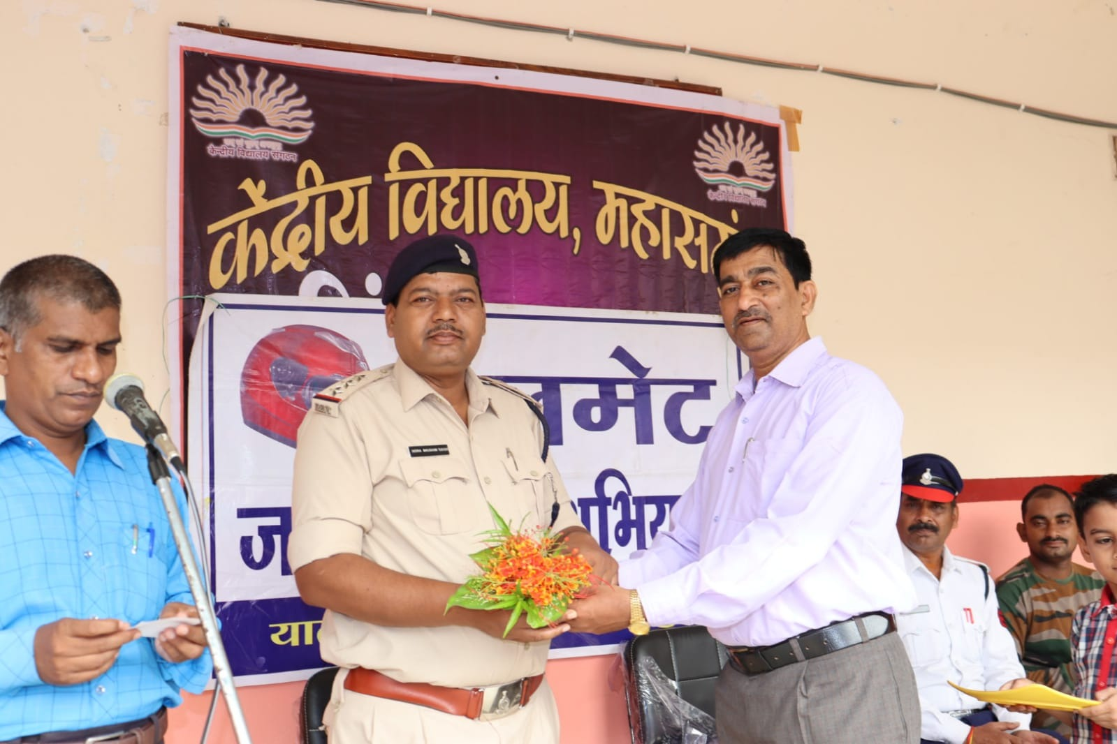 श्रीमान पुलिस अधीक्षक भोजराम पटेल एवं अतिरिक्त पुलिस अधीक्षक आकाश राव गिरपुन्जे के निर्देशानुसार एवं उप पुलिस अधीक्षक (यातायात) राजेश देवांगन के मार्गदर्शन में प्रभारी यातायात इंद्रभूषण सिंह, के द्वारा आज दिनांक 28.09.2022 को केंद्रीय विद्यालय महासमुंद में खाकी के रंग स्कूल के संग एवं *जिंदगी मिलेगी ना दोबारा यातायात जागरूकता कार्यक्रम के तहत केंद्रीय विद्यालय महासमुंद के अध्ययनरत छात्र-छात्राओं एवं उपस्थित शिक्षकों को यातायात नियमों जैसे बिना सीट बेल्ट के वाहन नहीं चलाना, दोपहिया वाहन चलाते समय हेलमेट का उपयोग करना, तेज गति से वाहन नहीं चलाना, दोपहिया वाहन में तीन सवारी नहीं चलना, ट्रैफिक सिग्नलों/नियमों का पालन करना, बिना लायसेंस के वाहन नहीं चलाना, सड़क दुर्घटना में घायल व्यक्तियों की सहायता करना एवं प्राथमिक उपचार हेतु डायल 112, 108 एवं अन्य इमरजेंसी वाहनों को तत्काल कॉल कर सूचना देना, इत्यादि यातायात सबंधी जानकारी देकर जागरूक किया गया