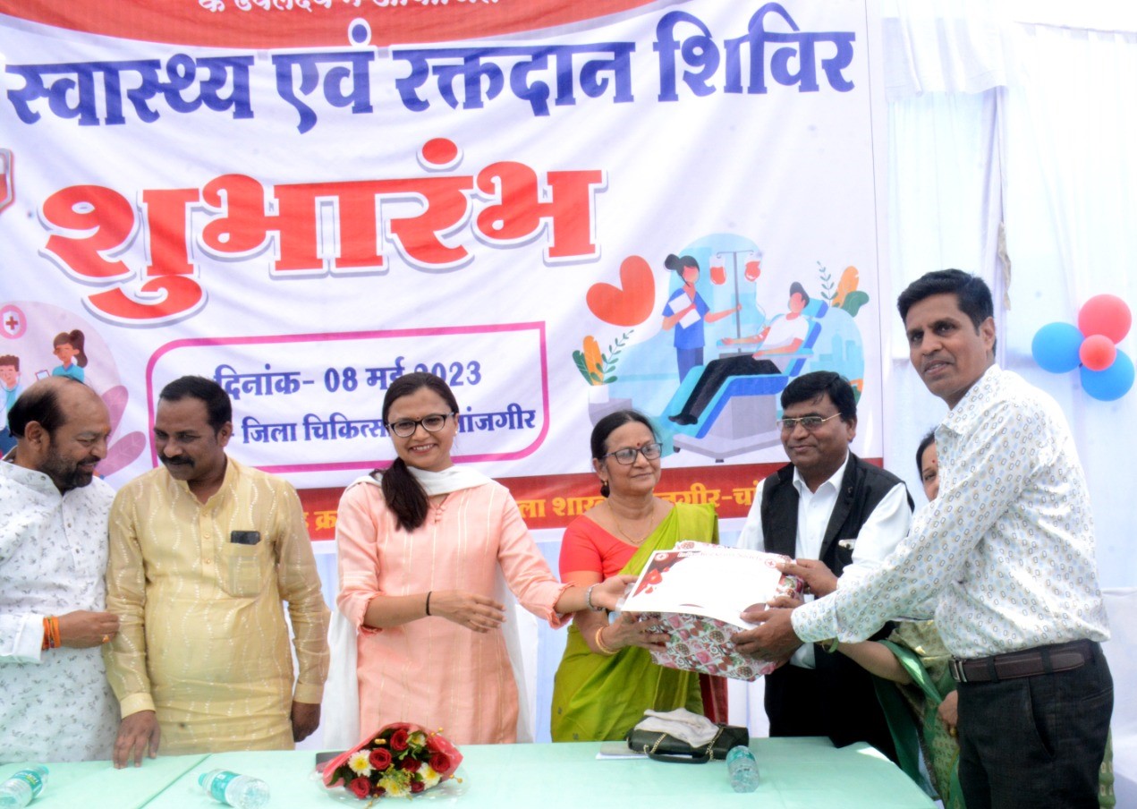 स्वास्थ्य शिविर में डॉ भरत भूषण कैंसर सर्जन, डॉ आदित्य केशरवानी न्यूरो सर्जन, डॉ प्रशांत सिंह गेस्ट्रोलाजिस्ट, डॉ स्नेहा जायसवाल आई. व्ही. एफ. स्पेशलिस्ट, डॉ मीनू केशकर स्त्री रोग विशेषज्ञ, डॉ समर्थ शर्मा गेस्ट्रोलाजिस्ट हड़डी रोग, शिशु रोग, हृदय रोग, नाक, कान और गला रोग विशेषज्ञों ने आज शिविर में आये लोगों का निःशुल्क ईलाज कर परामर्श दिए। इस अवसर पर मिशन रक्त दान सेवा समिति के तत्वाधान में विशाल रक्तदान शिविर का आयोजन किया गया। रक्त वीरों एवं संस्था के कार्यकर्ता को उत्कृष्ट कार्य करने पर कलेक्टर सुश्री चौधरी ने प्रशस्ति पत्र देकर सम्मानित किया। मिशन रक्तदान सेवा समिति के संथापक के के कश्यप ने बताया कि उन्होंने 35वीं बार, संजय राठौर 46वीं बार रक्तदान किया है। शिविर में प्रथम रक्तदाता सुरेन्द्र कुमार जांगड़े एवं मनोज राठौर, कैलाश कश्यप, नीता भूषण महंत सहित अन्य रक्तदाताओं एवं समिति के सदस्यों को प्रमाण पत्र देकर सम्मानित किया गया।