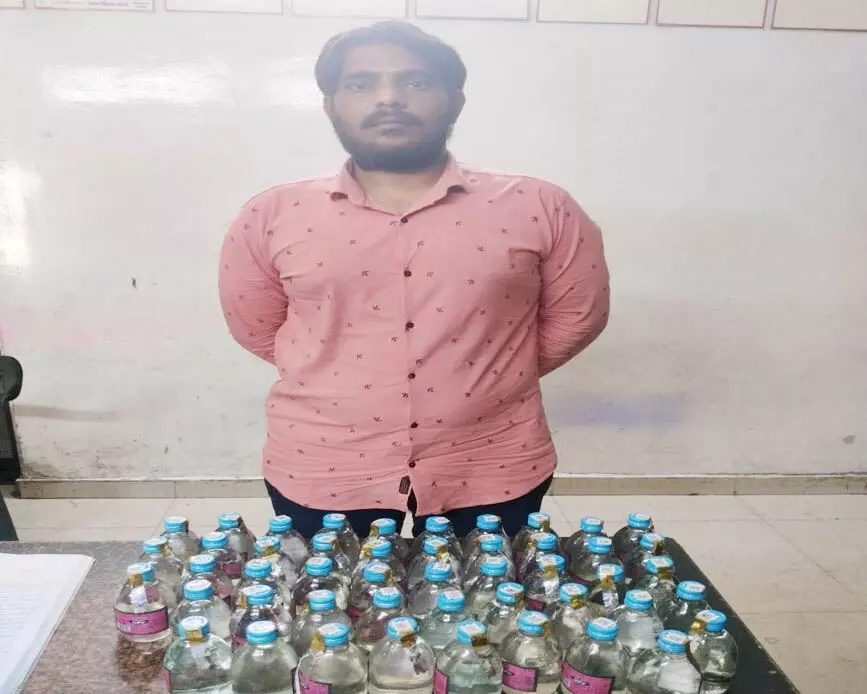 जिस पर वरिष्ठ अधिकारियों के निर्देशन में एण्टी क्राईम एण्ड साईबर यूनिट तथा थाना खमतराई पुलिस की संयुक्त टीम द्वारा उक्त स्थान जाकर मुखबीर द्वारा बताए हुलिये के व्यक्ति की पतासाजी कर चिन्हांकित कर पकड़ा गया। पूछताछ में व्यक्ति ने अपना नाम शेख शाहरूख निवासी गंज रायपुर का होना बताया। टीम के सदस्यों द्वारा उसके पास रखे थैले की तलाशी लेने पर थैले में देशी शराब रखा होना पाया गया। शराब रखने के संबंध में शेख शाहरूख से वैध दस्तावेज की मांग करने पर उसके द्वारा किसी प्रकार का कोई दस्तावेज प्रस्तुत न कर टीम के सदस्यों को लगातार गुमराह करने का प्रयास किया जा रहा था।