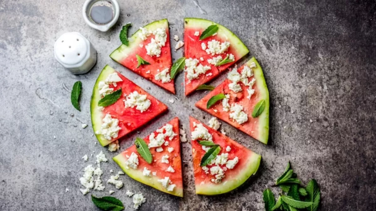 2. तरबूज को लगभग 2 इंच मोटा काटें और उन्हें वेजेज में काट लें। हर स्लाइस पर क्रीम चीज़ ग्लेज़ का एक दो बड़ा चम्मच फैलाएं, सावधान रहें कि यह किनारे से न निकले। फ्रॉस्टिंग के टॉप पर कटे हुए फलों को डालें।