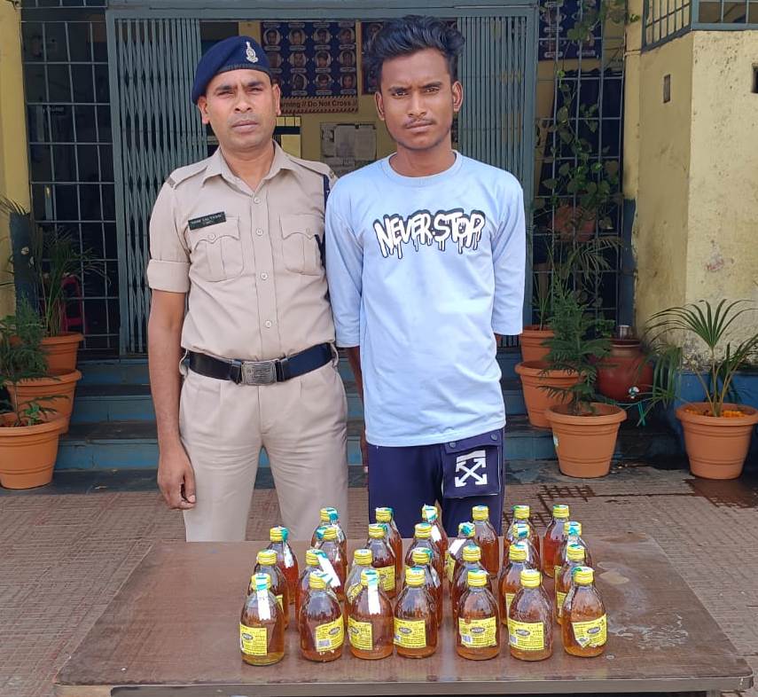 रायपुर,15 जून । रायपुर की उरला थाना पुलिस ने 35 पौवा देशी शराब के साथ एक आरोपी को गिरफ्तार किया है। मुखबिर की सूचना पर कार्रवाई करते हुए उरला थाना पुलिस ने 14 जून को बीरगांव बुधवारी बाजार नंदी चौरा के पास से रवि ध्रुव को पकड़ा तलाशी लेने पर उसके पास रखे झोले से 35 पौवा देशी मसाला शराब बरामद हुई।