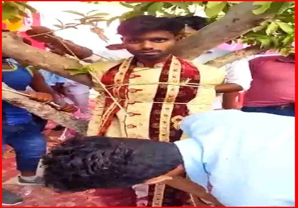 बरात लेकर दुल्हन के घर पहुंचे दूल्हे को जयमाल के दौरान दहेज की मांग करना महंगा पड़ गया। उसकी मांग सुनकर परिवार के लोग सन्न रह गए। पहले तो समझाने का प्रयास किया गया, लेकिन बात न बनने पर दूल्हे को पेड़ से बांध दिया गया। कई बरातियों को भी बंधक बनाया गया है।