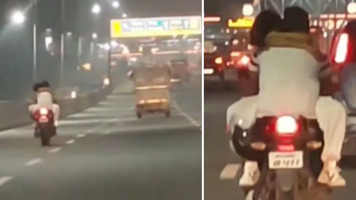 Couple Romance On Bike: सोशल मीडिया पर एक वीडियो तेजी से वायरल हो रहा है, जिसमें एक प्रेमी जोड़ा चलती बाइक पर इश्क फरमाता हुआ नजर आता है. इसमें देखा जा सकता है कि युवक बाइक चला रहा है, जबकि प्रेमिका पेट्रोल की टंकी पर बैठी हुई है और उसने युवक की बाहों में बाहें डाल रखी है. यह वीडियो उत्तर प्रदेश के गाजियाबाद के इंदिरापुरम इलाके का बताया जा रहा है.