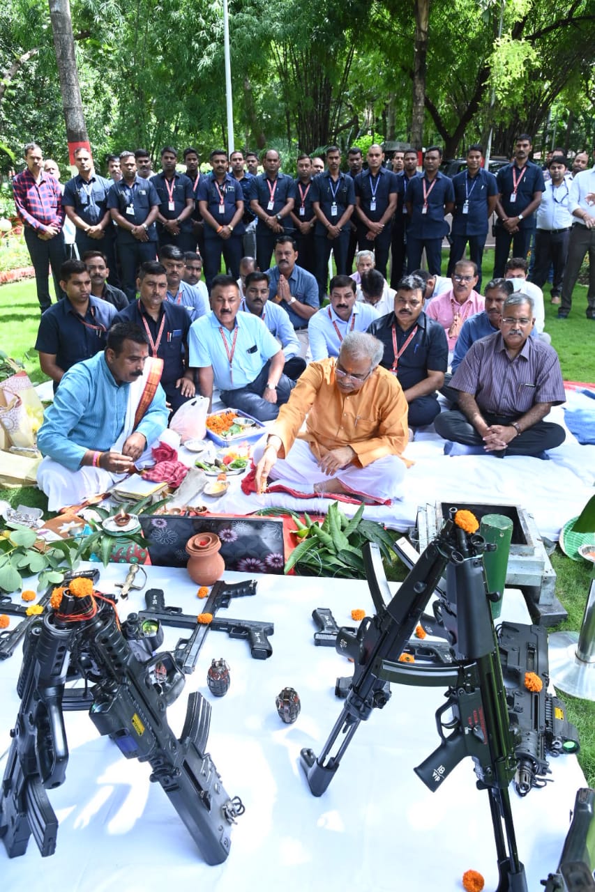 मुख्यमंत्री भूपेश बघेल ने आज यहां अपने निवास में विजयादशमी पर्व के पावन अवसर पर शस्त्र पूजा की। उन्होंने इस अवसर पर उपस्थित अधिकारियों-कर्मचारियों सहित प्रदेशवासियों को विजयादशमी पर्व की बधाई और शुभकामनाएं दीं।