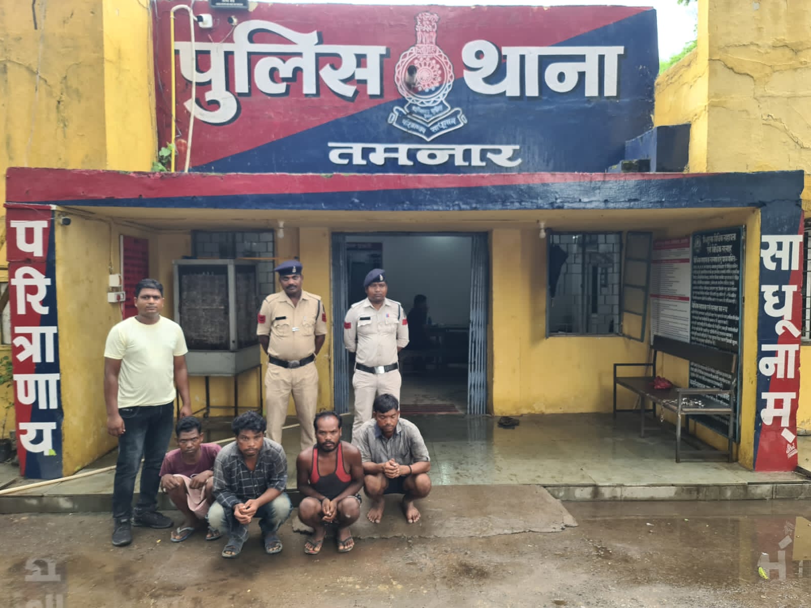इसी क्रम में थाने के बीट कर्मचारी को ग्राम टपरंगा, आमाघाट और कठरापाली निवासी फरार वारंटियों के आमद रफत की जानकारी मिली और उसने थाना प्रभारी को अवगत कराया । थाना प्रभारी तमनार द्वारा तत्काल टीम तैयार कर देर रात दबिश दिया गया जिसमें 04 स्थायी वारंटियों को गिरफ्तार करने में सफलता मिली है जिसमें 11 साल से फरार लूट का आरोपी प्रकाश सिंह तिग्गा उर्फ हिरो भी शामिल है । तमनार पुलिस द्वारा आज वारंटियों को न्यायालय पेश कर जेल दाखिल किया गया है ।
