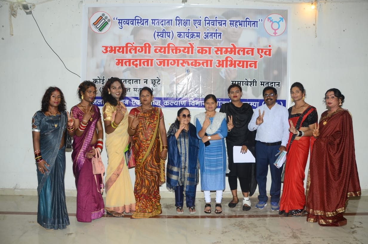 इसी कड़ी में आज गांधी भवन चांपा में उभयलिंगी व्यक्तियों का सम्मिलन एवं मतदाता जागरूकता कार्यक्रम आयोजन किया गया। जिसमें बड़ी संख्या में उभयलिंगी व्यक्तियों द्वारा उत्साहपूर्वक भाग लेकर निर्वाचक नामावली नाम जोड़ने एवं वोटर आईडी मे संशोधन एवं रेखांकन का कार्य किया गया।
