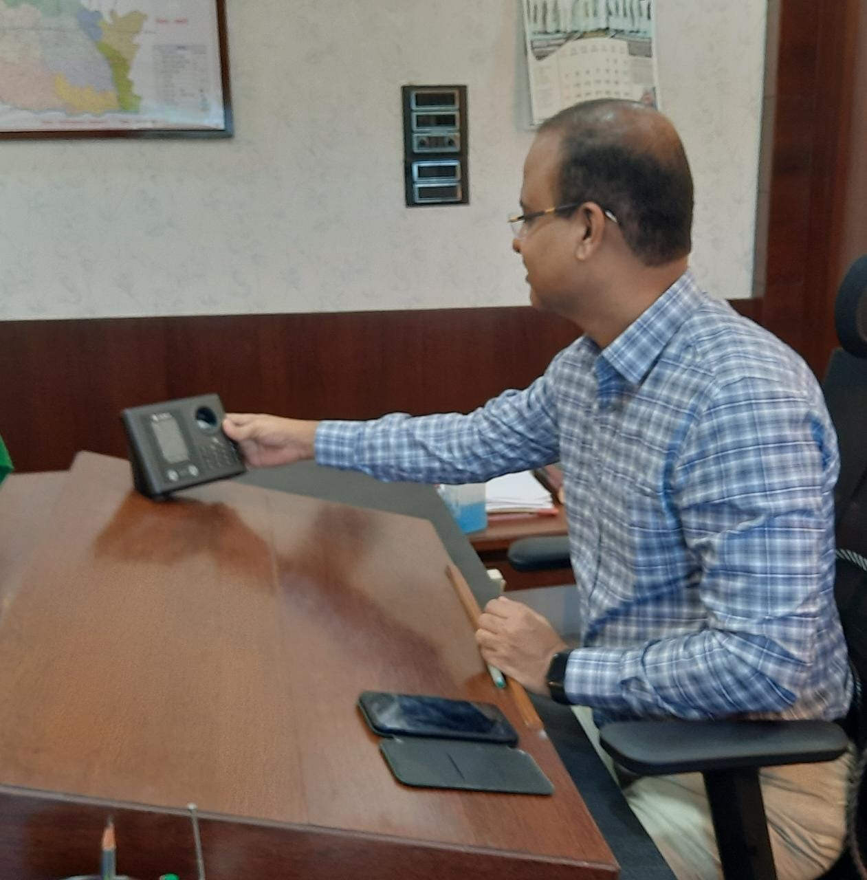एक्सपर्ट से फेस रीडिंग मशीन के संबंध में सम्पूर्ण जानकारी लेने के साथ कलेक्टर श्री सिन्हा ने मशीन को हाथों में लेकर बारीकी से परखा। उन्होंने कहा कि निरीक्षण के दौरान कार्यालय सहित स्कूलों में समय पर उपस्थिति नहीं मिल रही थी। बैठक लेकर विभागीय अधिकारियों को भी निर्देश देकर शतप्रतिशत उपस्थिति सुनिश्चित करने कहा गया है। वे मशीन लगाने के पक्ष में नहीं थे, लेकिन जिले में समय पर शासकीय कामकाज, शासन की योजनाओं के क्रियान्वयन, आम नागरिकों के हितों के अलावा पारदर्शी और स्वच्छ प्रशासन की दिशा में कदम बढ़ाने के लिये यह जरूरी हो गया था। अब जो मनमानी करेंगे, उसके विरूद्ध कार्यवाही करना आसान हो जायेगा। उन्होंने किसी तरह की कार्यवाही से बचने के लिए सभी अधिकारियों-कर्मचारियों को समय पर आने के निर्देश दिए हैं।
