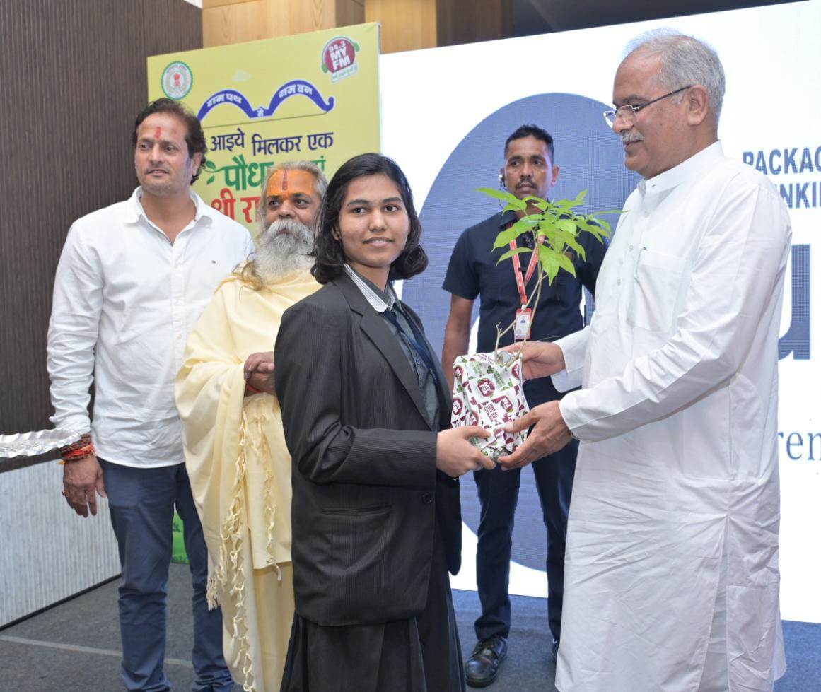 रायपुर, 20 अगस्त 2023/मुख्यमंत्री भूपेश बघेल मॉय एफ एम 94.3 के आईये मिलकर एक पौधा लगाएं श्रीराम के नाम कार्यक्रम में शामिल हुए। उन्होंने राम वनगमन पथ के प्रारंभिक नौ स्थलों के मिट्टी से लगाए गए पौधों को स्कूल के बच्चों को वितरित किया। इन पौधों को कौशल्या माता परिसर चंदखुरी में रोपण किया जाएगा।