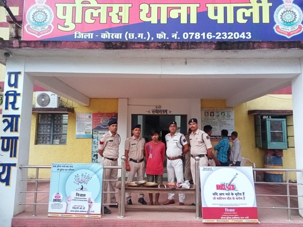 कोरबा जिला में चलाए जा रहे संपत्ति संबंधी अपराधों के संपत्ति बरामदगी निराकरण अभियान व बेसिक पुलिसिंग प्रभावशाली बनाने हेतु , कोरबा पुलिस अधीक्षक संतोष सिंह के उचित दिशानिर्देश एवं अतिरिक्त पुलिस अधीक्षक अभिषेक वर्मा ,अनुविभागीय अधिकारी श्री ईश्वर त्रिवेदी के मार्ग दर्शन पर पाली थाना प्रभारी निरीक्षक राजीव श्रीवास्तव व पुलिस टीम के द्वारा गुड़ा बदमाश, उपद्रवीयों, लूट, डकैती, चोरी पर आकुंश लगाने हेतु लगातार कार्यवाही की जा रही है। पेट्रोलिंग के दौरान दिनाँक 07.10.2022 को पाली पुलिस टीम को मुखबिर से चोरी की सुचना मिलने पर तत्काल सउनि डी.आर. ठाकुर, आरक्षक 654 शैलेन्द्र तंवर मामले की छानबीन कार्यवाही करने के लिए मादन रोड रवाना किया गया।