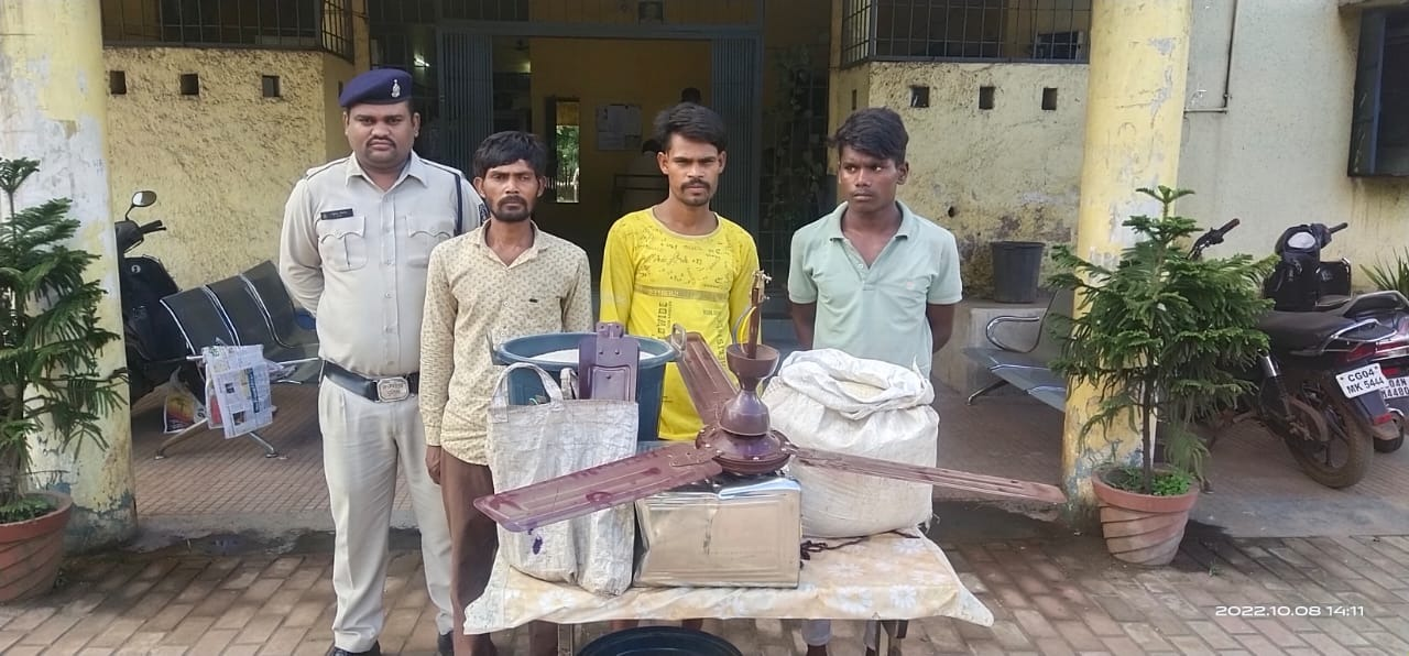 गत दशहरा छुट्टी के दौरान थाना उरला क्षेत्रांतर्गत शासकीय प्राथमिक एवम हाई स्कूल , उरला में कुछ चोरों ने दो नग पंखा, तेल के पिपे, लगभग 50 किलो चावल सहित कीमती लगभग 6,000 रूपये चोरी कर ले गये थे। प्रार्थिया सोनाली देशपाण्डे देवेन्द्र नगर रायपुर की रिपोर्ट पर थाना उरला में अप.क्र.477/22 धारा 457,380 भादवि का अपराध पंजीबद्ध कर विवेचना में लिया गया था। मुखबीर सूचना के आधार पर उरला पुलिस द्वारा तीन संदिग्ध लोगों को पूछताछ हेतु थाना लाया गया। गहन पूछताछ पर आरोपियों ने घटना कारित करना कबूल किया। आरोपियों से चोरी का सामान बरामद किया गया है। आरोपियों को विधिवत गिरफ्तार कर ज्युडीशिल रिमाण्ड पर भेजा जा रहा है।