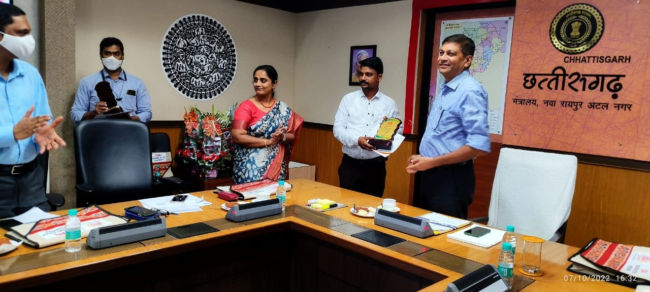 जांजगीर-चांपा 09 अक्टूबर कार्यालय ई गवर्नन्स जांजगीर चाम्पा के आधार ऑपरेटर दिलीप साहू तहसील नवागढ़ को रजिस्ट्रार इलेक्ट्रॉनिक्स एंड आईटी,गवर्न्मेंट ऑफ़ छत्तीसगढ़ के अंतर्गत पूरे छत्तीसगढ़ में उत्कृष्ट कार्य हेतु क्षेत्रीय कार्यालय UIDAI हैदराबाद द्वारा मुख्य सचिव अमिताभ जैन सर के हाथों 07 अक्टूबर को आधार एक्सीलेंस अवार्ड से सम्मानित किया गया और ई सेवाओं हेतु विभाग की प्रशंसा की गयी।