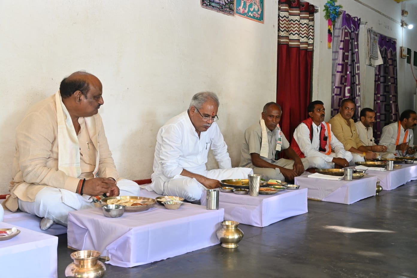 मुख्यमंत्री भूपेश बघेल ने आज भेंट-मुलाकात कार्यक्रम के दौरान ग्राम छपोरा में किसान वेद राम साहू के यहां भोजन किया।