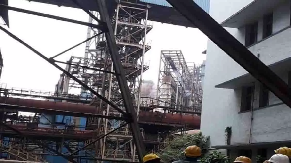 भिलाई ,14 अक्टूबर । भिलाई इस्पात संयंत्र में गुरुवार की शाम दुर्घटना हो गई। पौने पांच बजे के करीब संयंत्र के ब्लास्ट फर्नेस क्रमांक-8 में लगा वाल्व क्रमांक-3 फट गया। इससे वहां पर आग लग गई। आग पर काबू पाने के लिए भिलाई इस्पात संयंत्र का फायरब्रिगेड का अमला लगा हुआ है। हादसे में किसी के हताहत होने की जानकारी नहीं है। वहीं फर्नेस में उत्पादन ठप हो गया है।