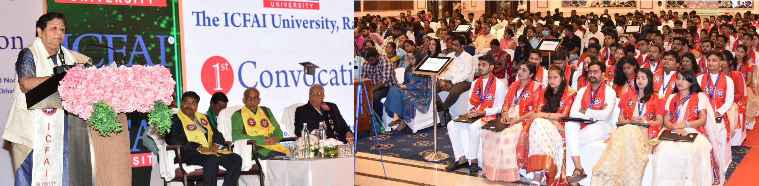 इस अवसर पर आई.सी.एफ.ए.आई. विश्वविद्यालय, रायपुर के कुलाधिपति श्री आर.पी. कौशिक, कुलपति श्री एस.के. दुबे, निजी विश्वविद्यालय विनियामक आयोग के अध्यक्ष श्री उमेश मिश्रा, कुलसचिव श्री रवि किरण पटनायक एवं श्री के.किशोर कुमार उपस्थित थे।