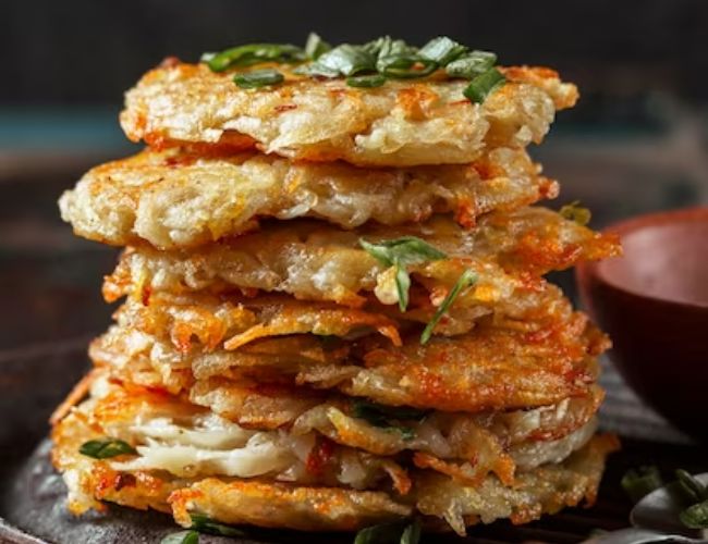 पैनकेक खाना तो हम सभी को पसंद है, हरे प्याज के पैनकेक बनाकर, स्वाद के साथ-साथ अपनी सेहत को भी बेहतर बना सकते हैं। सबसे पहले हरे प्याज को साफ कर लें और काटकर रख दें। इसके बाद नरम आटा गूंथे और इसे एक कपड़े से ढक कर थोड़ी देर के लिए अलग रख दें। आंटे के टुकड़े अलग करके, उसे बेल लें और उस पर हल्का तेल लगाकर, ऊपर से हरी प्याज डालें। एक पैन में तेल गर्म करके उसमें इसे सुनहरा भूरा होने तक फ्राई करें और छान लें। इसके बाद, बचे हुए आटे के गोले के साथ भी यही स्टेप दोहराएं और हो गया आपका स्प्रिंग अनियन पैनकेक तैयार। इसे केचअप या चटनी के साथ गरमा-गरम परोसें।