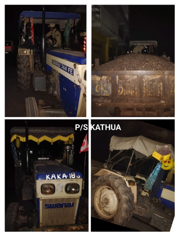 इसी प्रकार दूसरी घटना में एसडीपीओ बिलावर अरविंद कुमार जेकेपीएस की निगरानी में इंस्पेक्टर सुनील कुमार एसएचओ थाना बिलावर और पीएसआई रविंदर सिंह प्रभारी पुलिस पोस्ट रामकोट के नेतृत्व में दो अलग-अलग पुलिस टीमों ने ट्रॉलियों के साथ 05 ट्रैक्टर जब्त किए। जिनके पंजीकरण संख्या जेके08के-8951, जेके08एल-6888, जेके08जी-2820, जेके08जी-2397 और एक ट्रैक्टर बिना किसी पंजीकरण संख्या के पीएस बिलावर और पीपी रामकोट के संबंधित क्षेत्राधिकार क्षेत्रों में नाका चेकिंग ड्यूटी के दौरान जब्त किया गया, जो निर्माण सामग्री के अवैध परिवहन में लिप्त थे। इस दौरान अवैध खनन में लिप्त ट्रॉलियों सहित सभी 04 डंपर और 06 ट्रैक्टर को जब्त कर लिया गया और आगे की कानूनी कार्यवाही के लिए तुरंत भूवैज्ञानिक और खनन विभाग कठुआ के अधिकारियों को सौंप दिया गया।