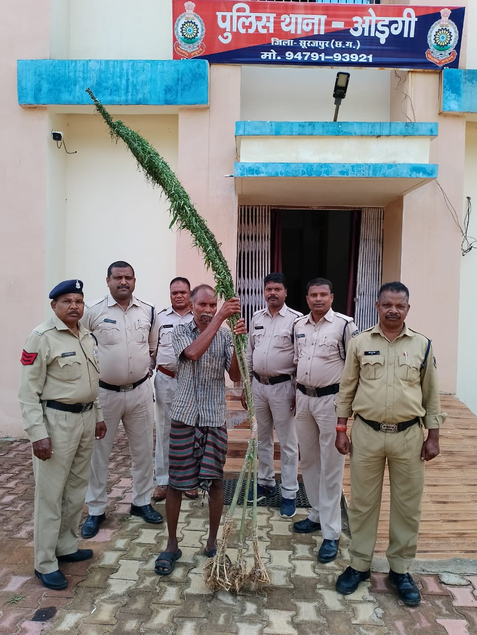 सूरजपुर ,17 अक्टूबर । पुलिस अधीक्षक रामकृष्ण साहू ने जिले में नशीले पदार्थ के क्रय-विक्रय पर अंकुश लगाने एवं अवैध कारोबार में संलिप्त लोगों के विरूद्व कठोर कार्यवाही करने को लेकर पुलिस अधिकारियों को सख्त निर्देश दिए है, निर्देश के पालन में थाना-चौकी प्रभारियों ने क्षेत्र में मजबूत सूचना तंत्र बिछा रखा है। रविवार, 16 अक्टूबर 2022 को थाना प्रभारी ओड़गी को मुखबीर से सूचना मिली कि ग्राम धरसेड़ी निवासी जयलाल अपने बाड़ी में गांजा का पौधा उगाकर रखा है जिसकी सूचना से पुलिस अधीक्षक सूरजपुर को अवगत कराए जाने पर उन्होंने तत्काल कार्यवाही करने के निर्देश दिए।